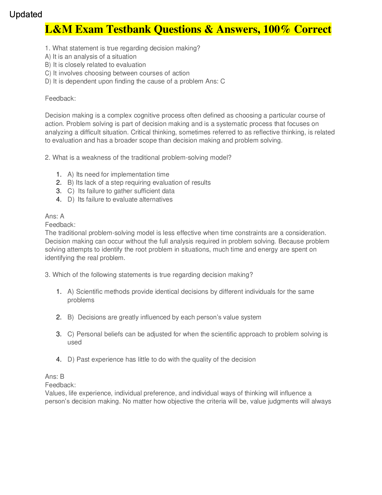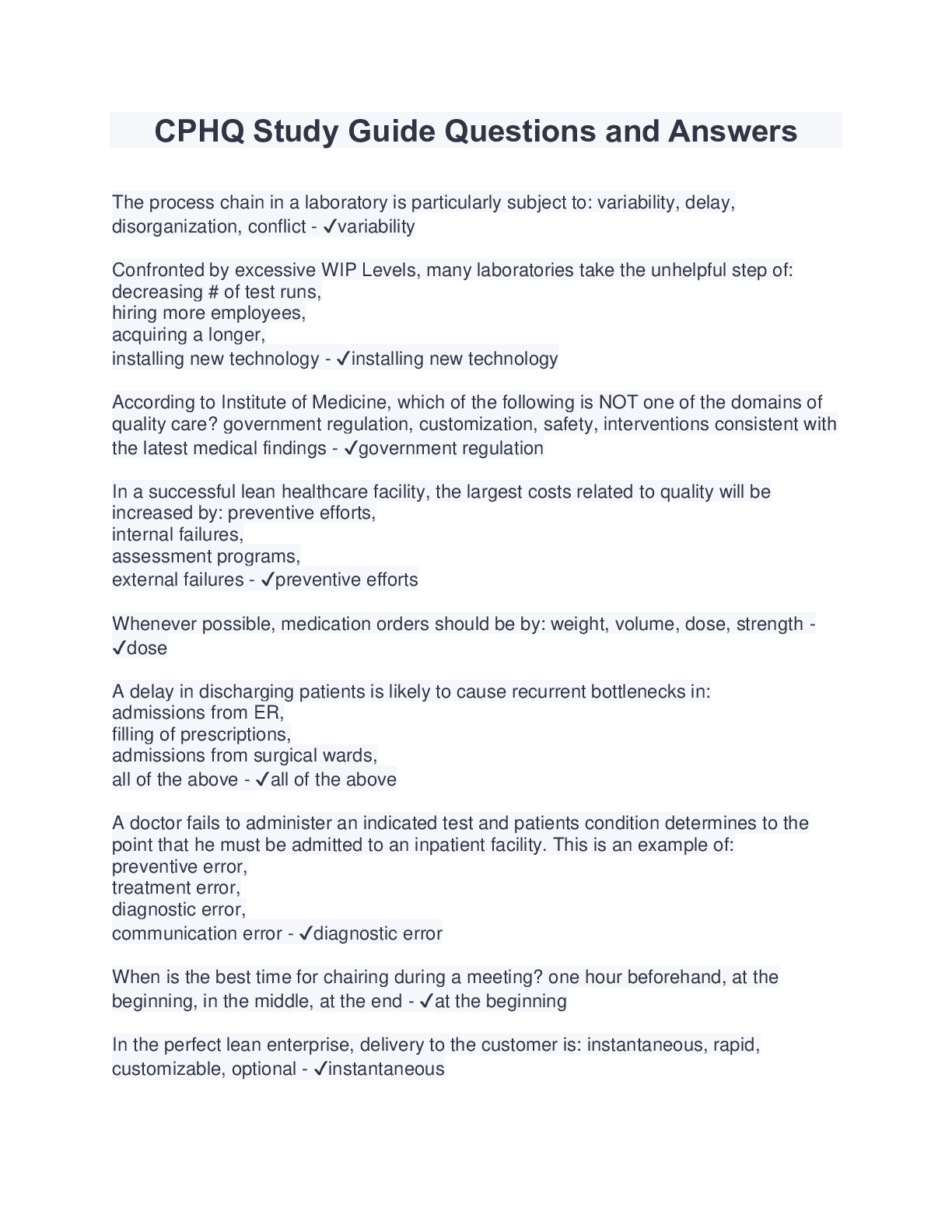 NAHQ CPHQ Practice Test Questions and Answers Rated A+ NAHQ Exam Questions and Correct Answers Graded A+ NAHQ Practice CPHQ Questions and Answers Rated A+ NAHQ Test Completed Answers Already...