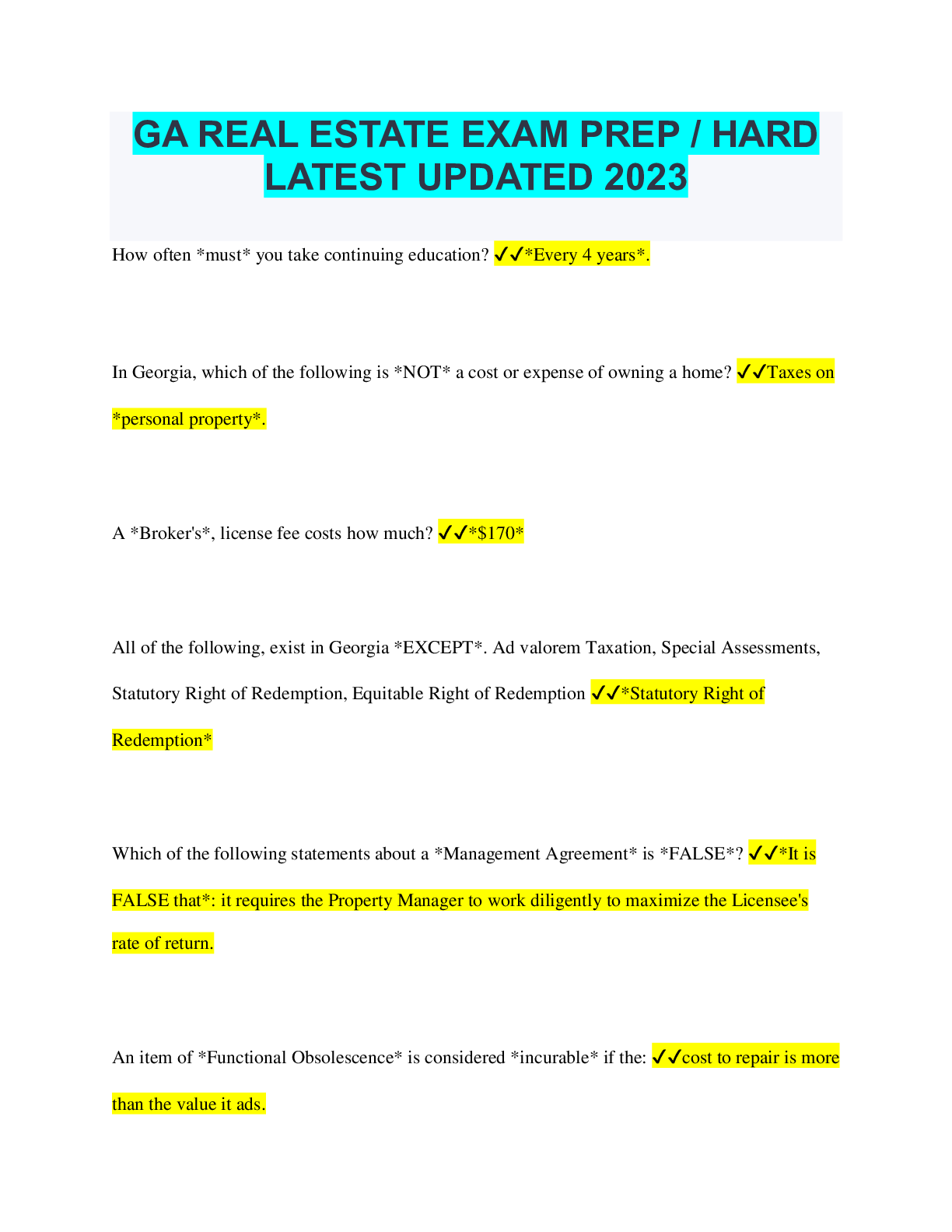 GA REAL ESTATE BUNDLED EXAMS QUESTIONS AND ANSWERS WITH VERIFIED SOLUTIONS