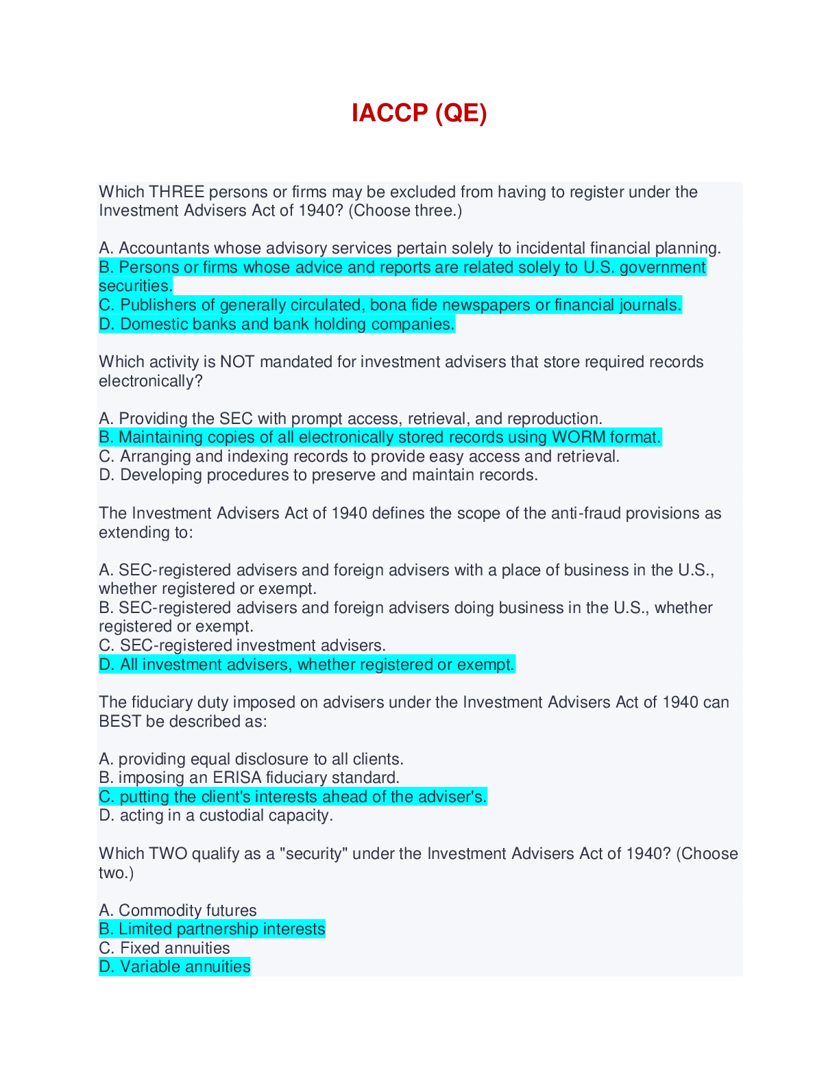 IACCP (QE) | IACCP EXAM STUDY GUIDE | IACCP MASTER TEST BANK | IACCP (MASTER TERMS)