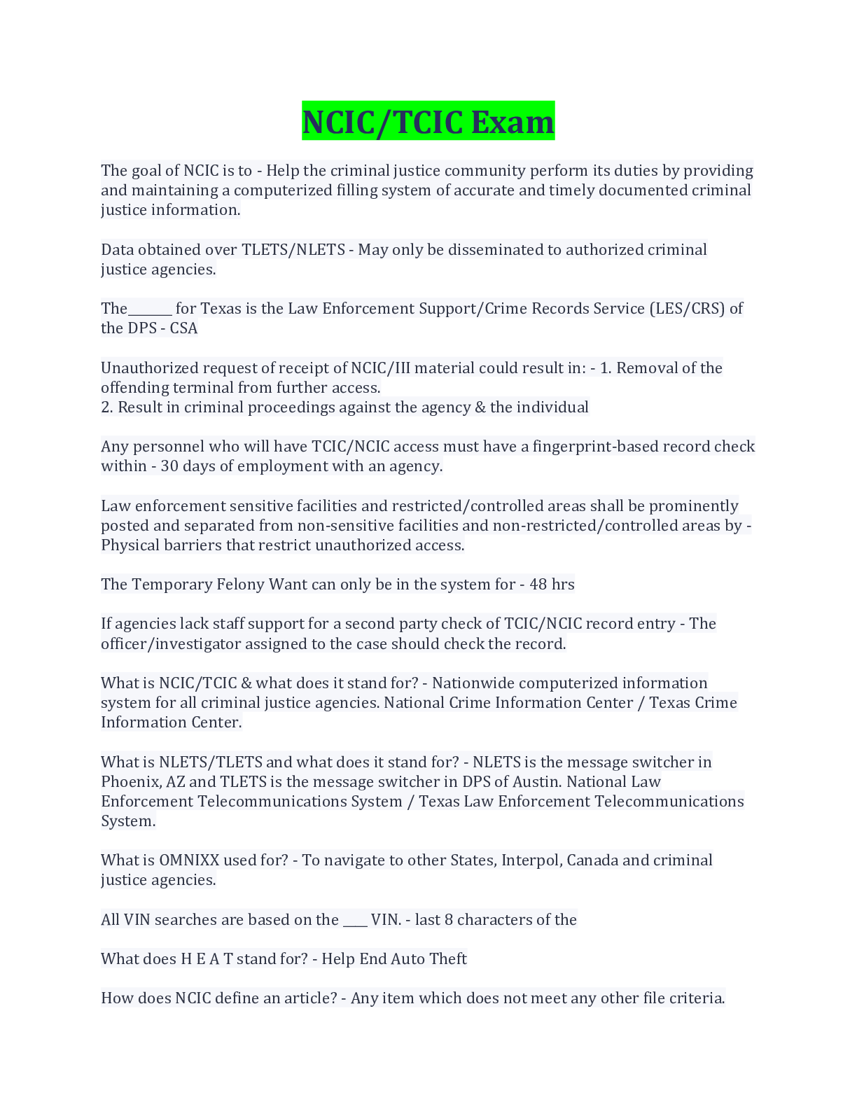 TCIC/NCIC COMPLETE SOLUTION PACK/ DOWNLOAD