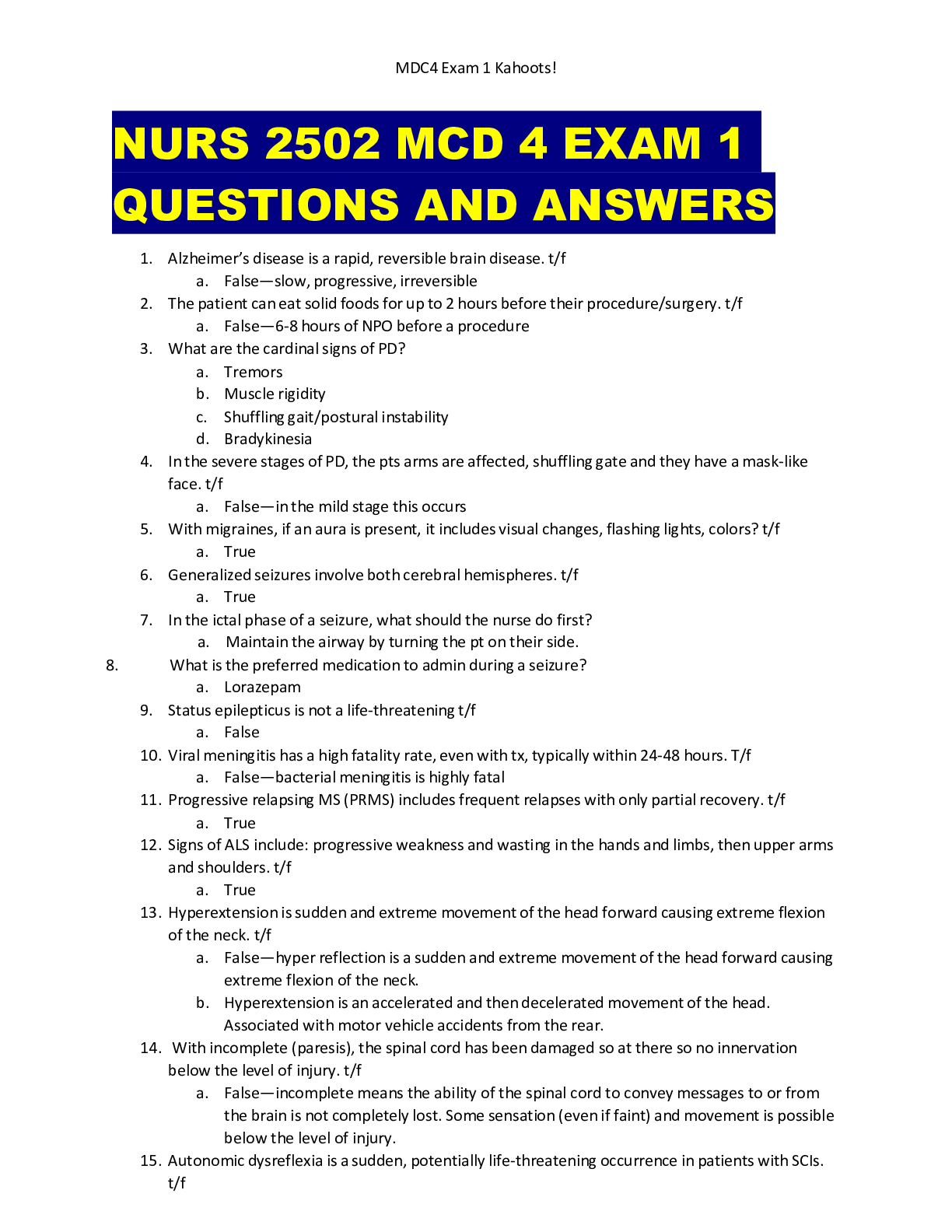 NURS 2755 MDC IV EXAM 2 QUESTIONS AND ANSWERS LATEST 2023 1. Ergotamine tartrate medications are beneficial in migraine headaches because they a. Dilate cerebral blood vessels *b. Constrict cere...