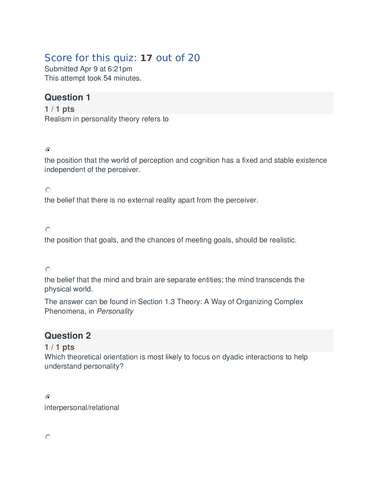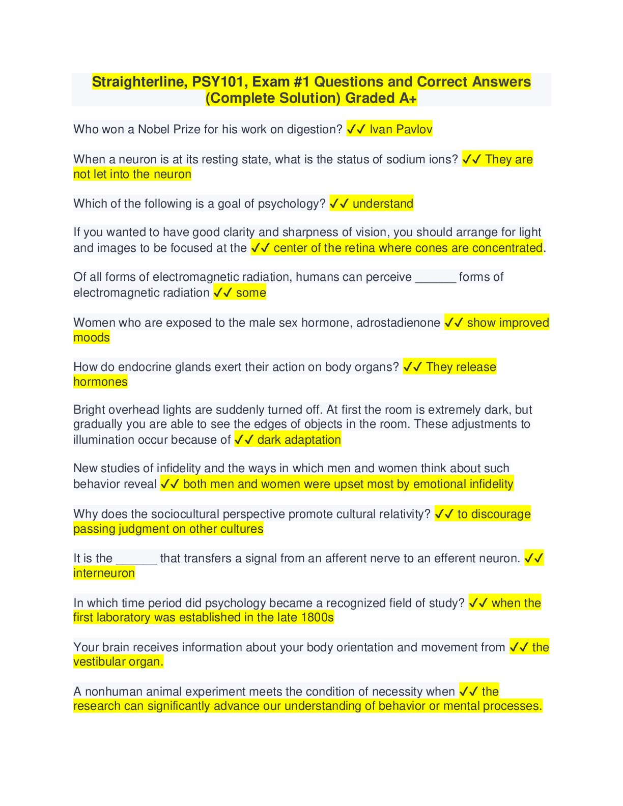 Straighterline, PSY101, Exam #1 Questions and Correct Answers (Complete Solution) Graded A+ Straighterline Psychology 101 Exam #3 Questions and Correct Answers (Complete Solution) Graded A+ Stra...