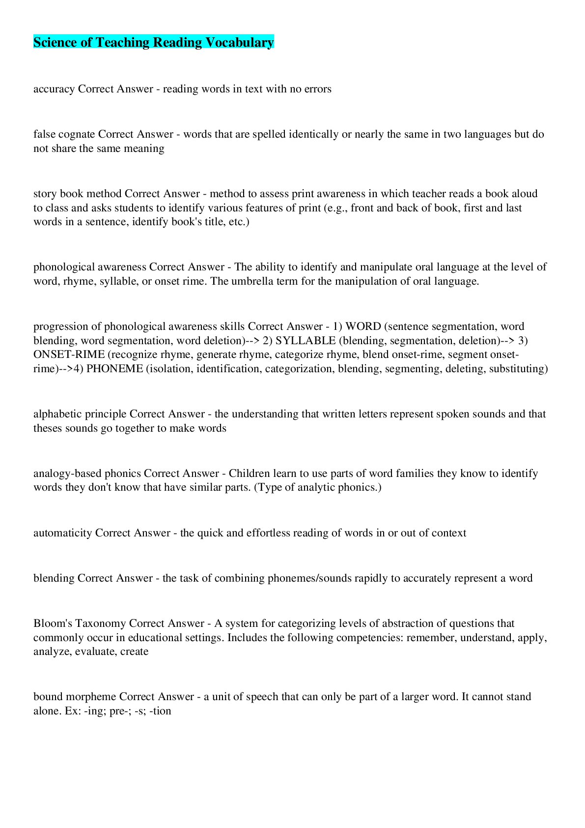 LETRS EXAMS - ,QUESTIONS AND ANSWERS - PACKAGE DEAL