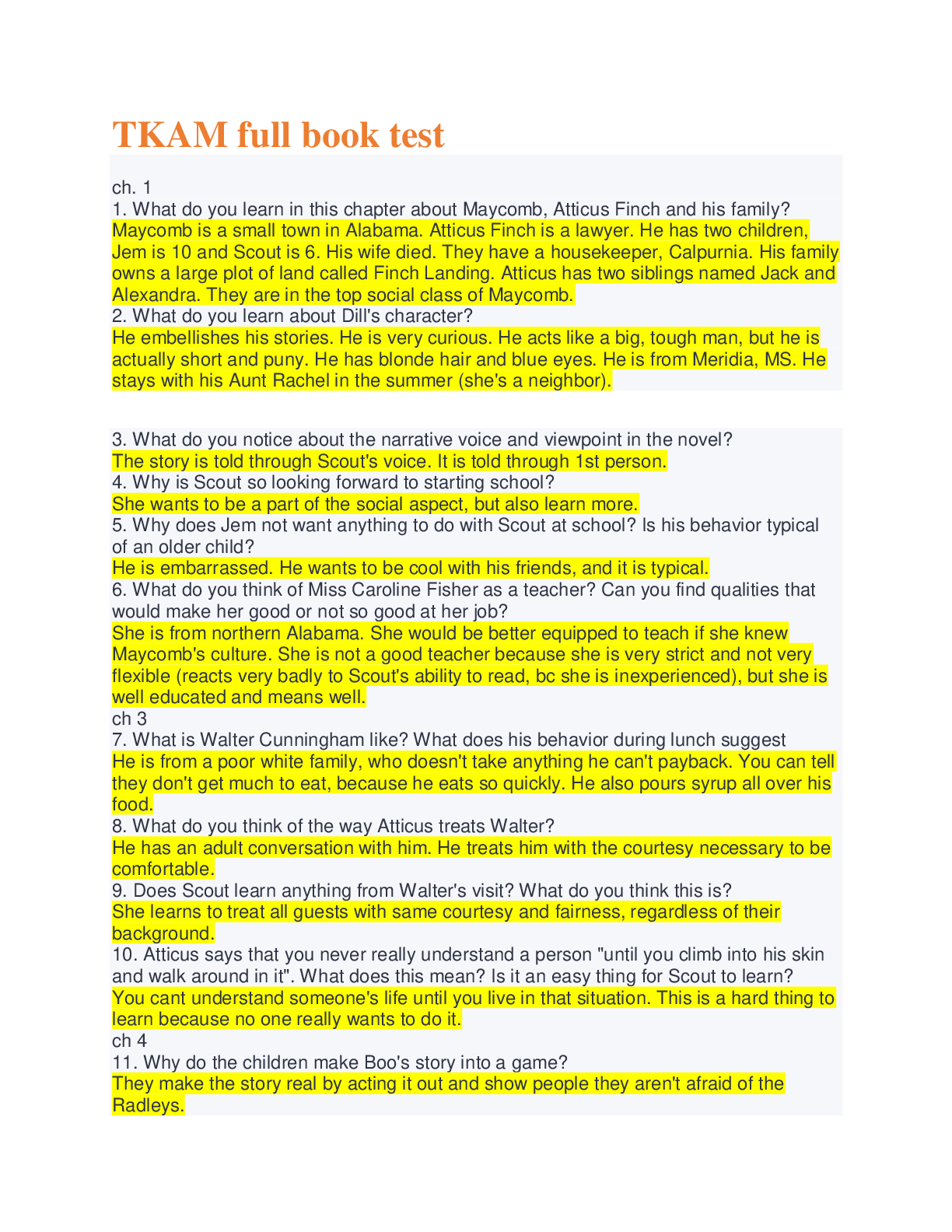 TKAM full book test Exams To kill a mockingbird part 2 test Exam To Kill a Mockingbird Unit Test with characters TKAM Test Study Guide 2022/2023 To Kill a Mockingbird FINAL TEST ALL CORRECT...