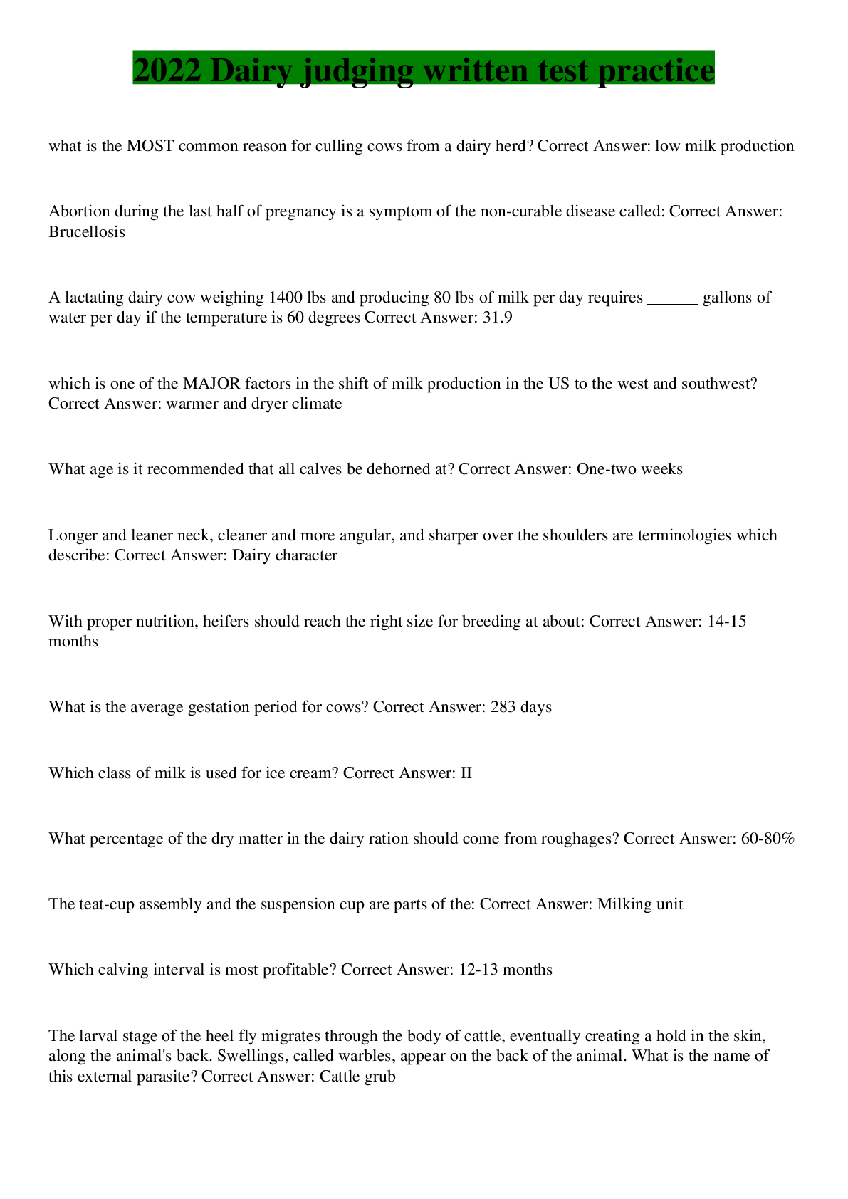 Bundle for Dairy Cattle Judging Exam Practice Questions 2022