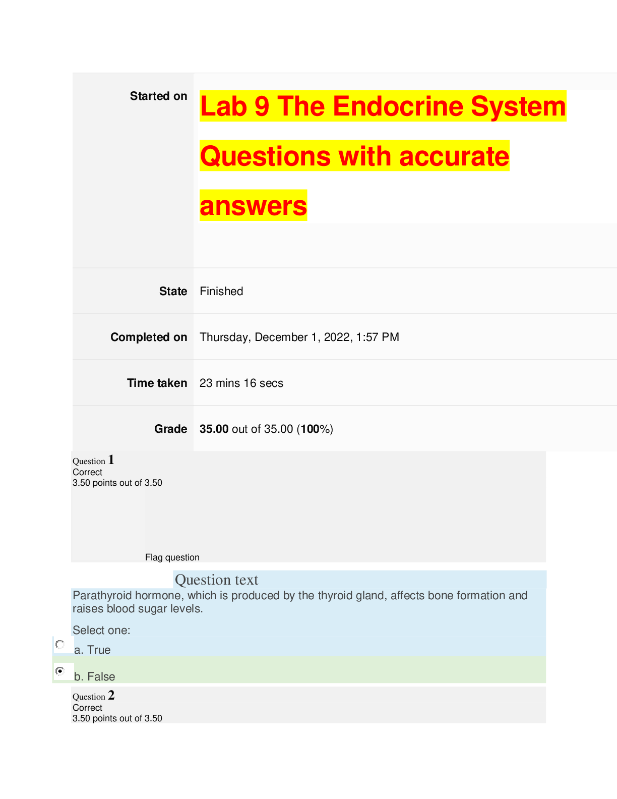 BIOS 255 Final Exam, Exam 2 & Exam 3 COMPILED Anatomy and Physiology III BUNDLE