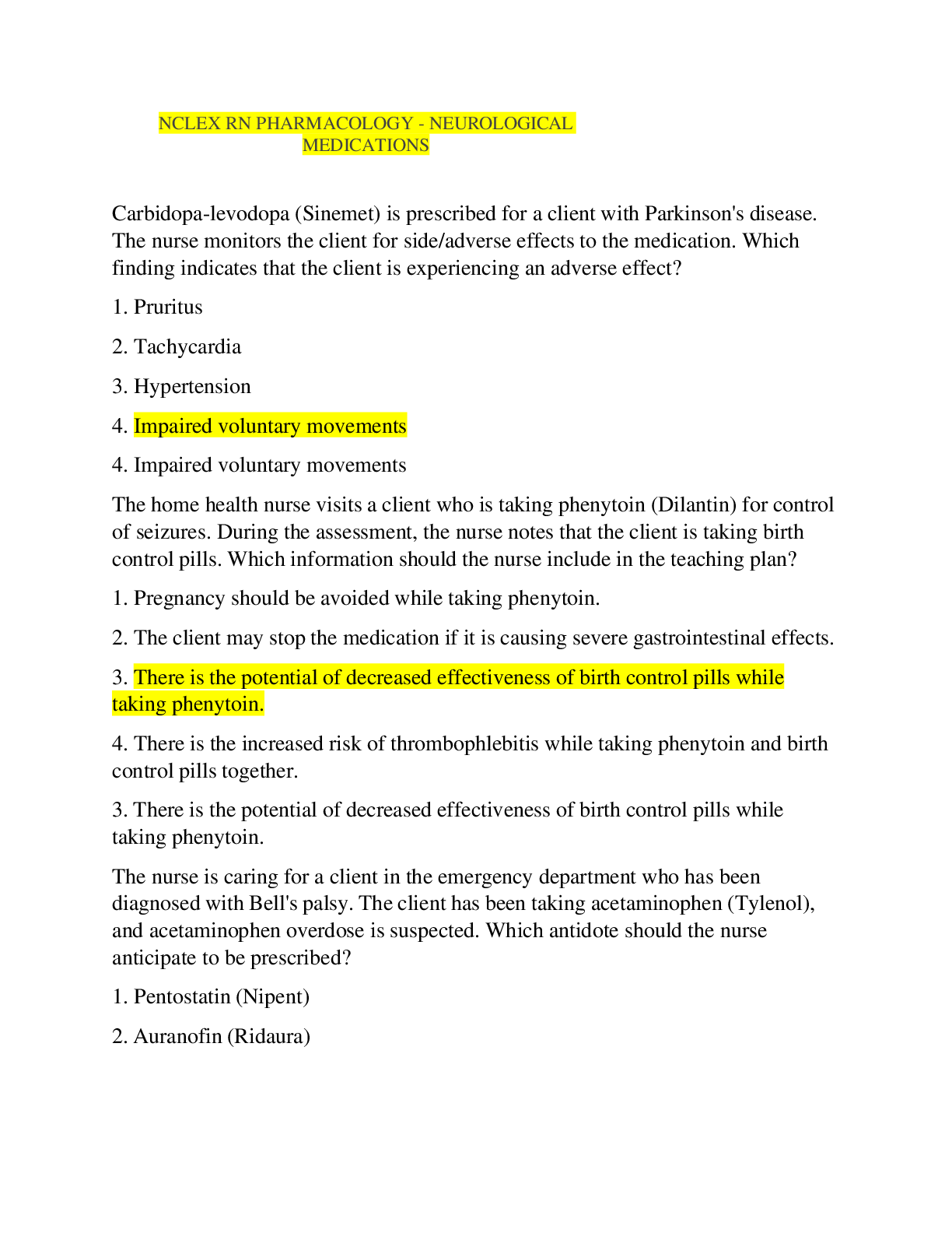 Comprehensive Nursing Pharmacology NCLEX Test Bank Quiz 300 Questions