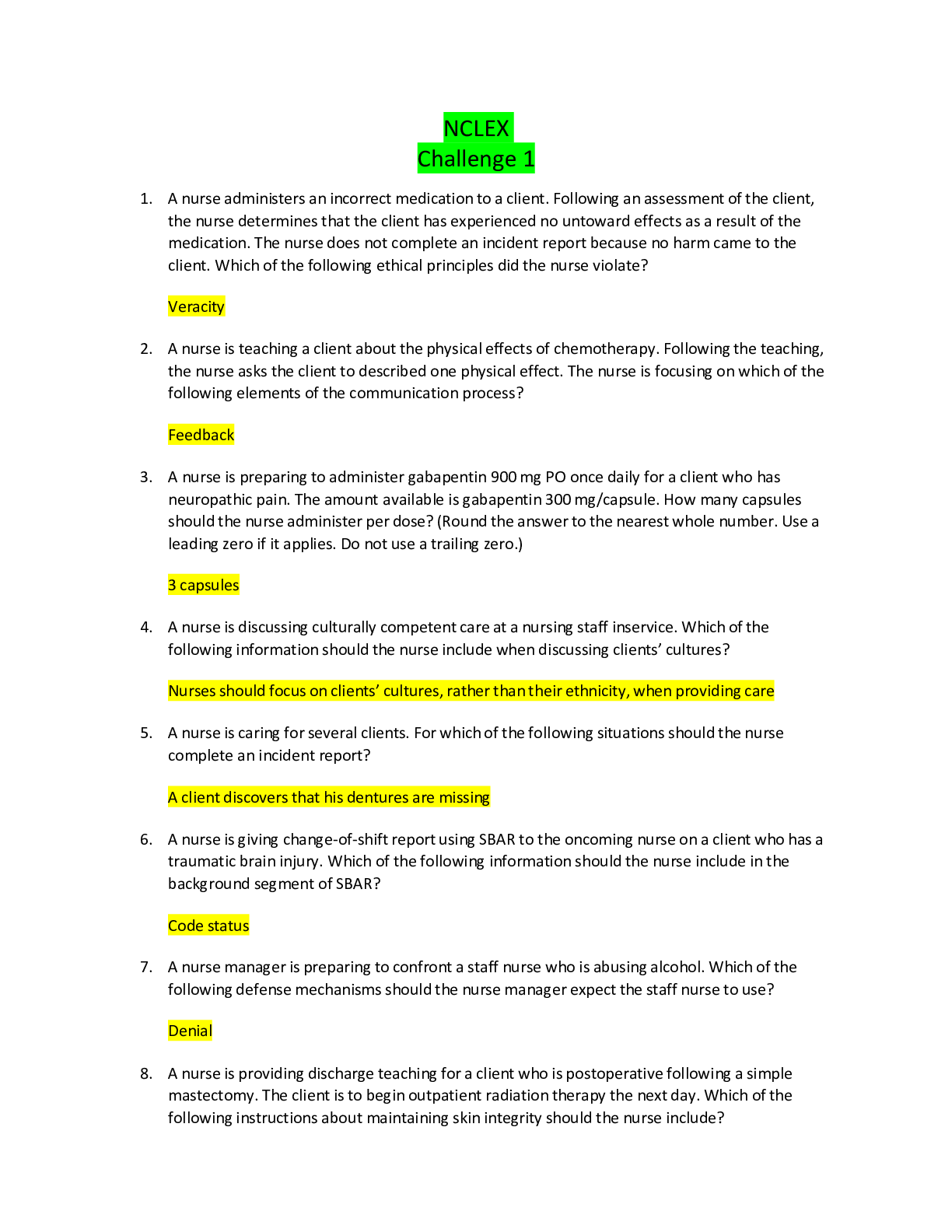 NUR 301 NCLEX Challenge 1, 3-8 BUNDLE- University of South Alabama|NUR 301 NCLEX Challenge 1, 3-8 BUNDLE- University of South Alabama|NUR 301 NCLEX Challenge 1, 3-8 BUNDLE- University of South Alabama