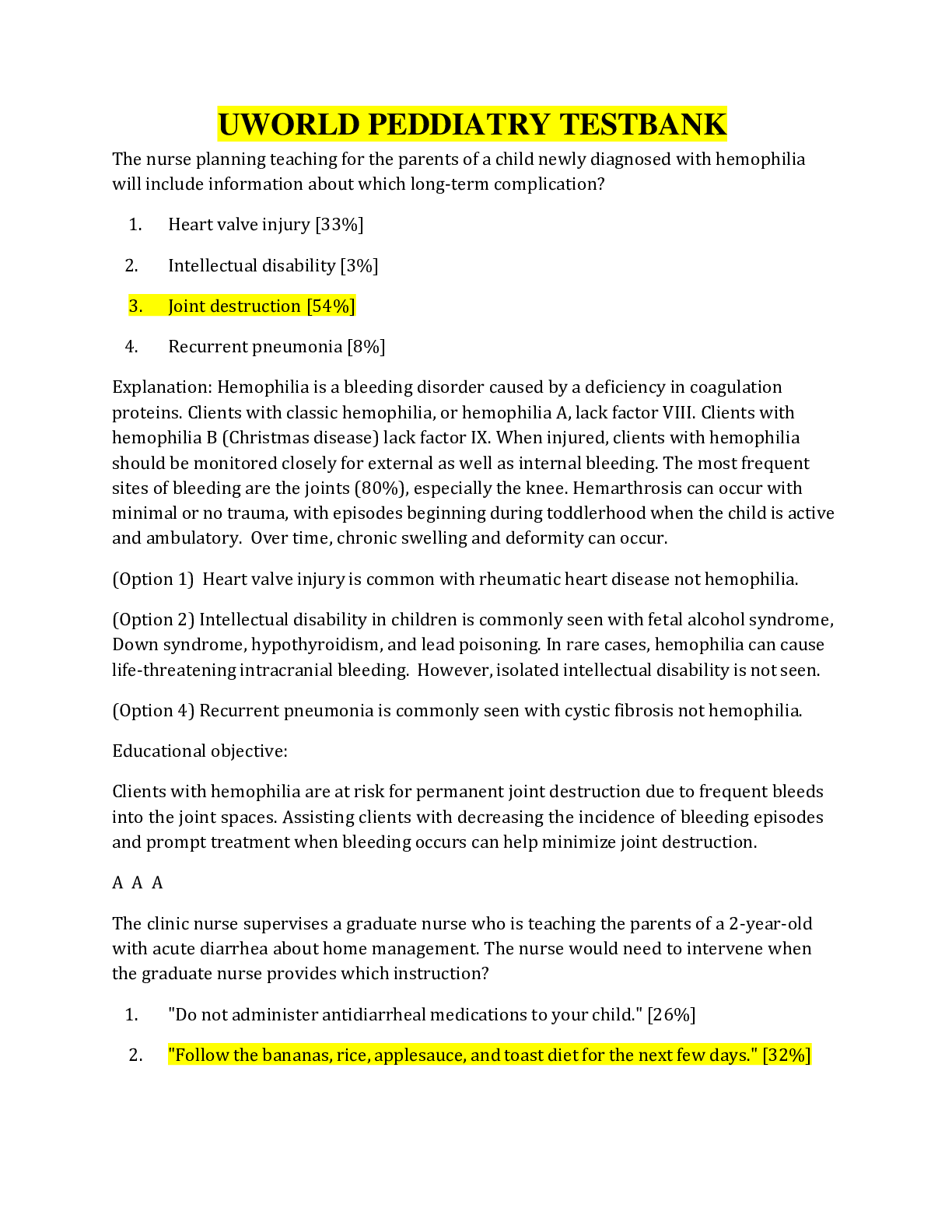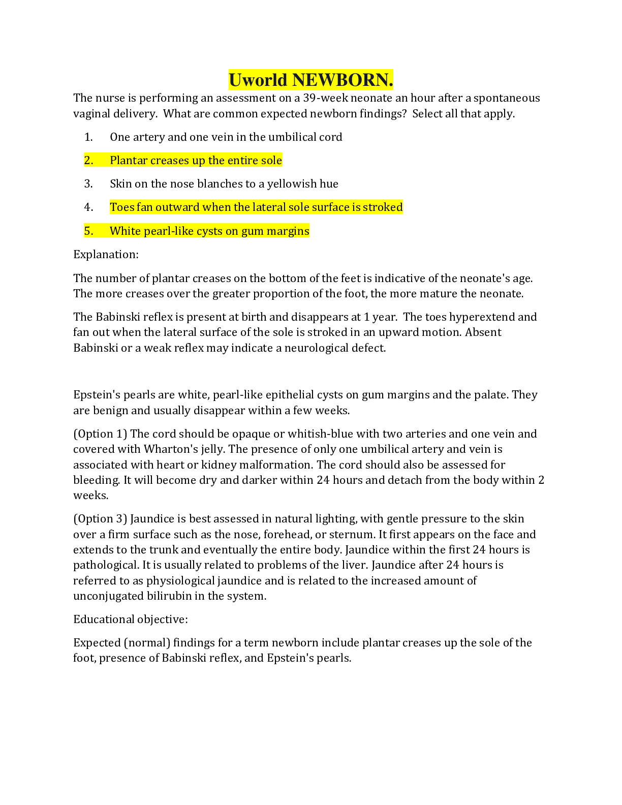 Uworld PEDDIATRY, NEWBORN & MATERNITY A A A TEST BANK LATEST 2021 WITH COMPLETE SOLUTIONS, A+ GUIDE