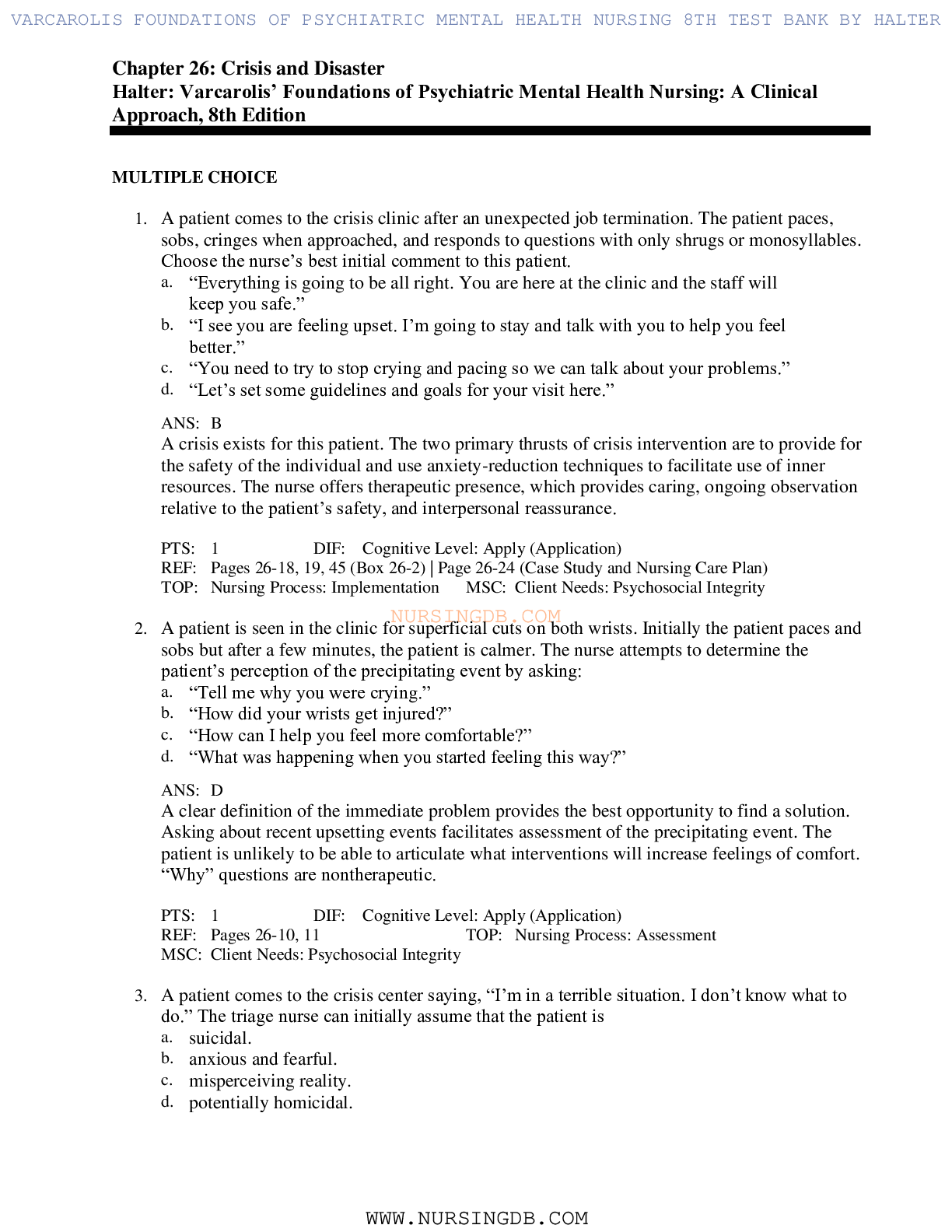 NR 326 MENTAL HEALTH B and C Quizzes - Broward College|NR 326 MENTAL HEALTH B and C Quizzes - Broward College
