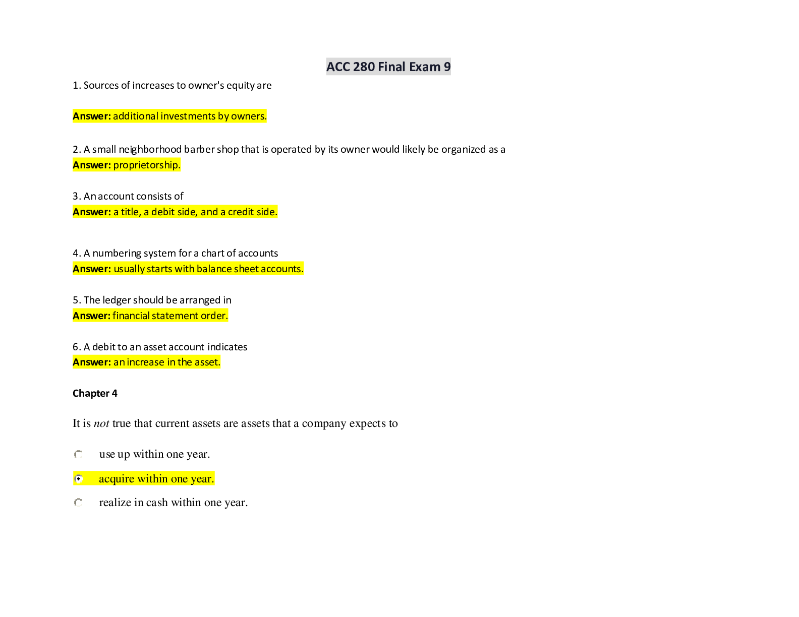 ACC 280 Final Exam 9|ACC 280 Final Exam 7|ACC 280 Final Exam 6|ACC 280 Final Exam 5|ACC 280 Final Exam 4|ACC 280 Final Exam 2|ACC 280 Final Exam 1