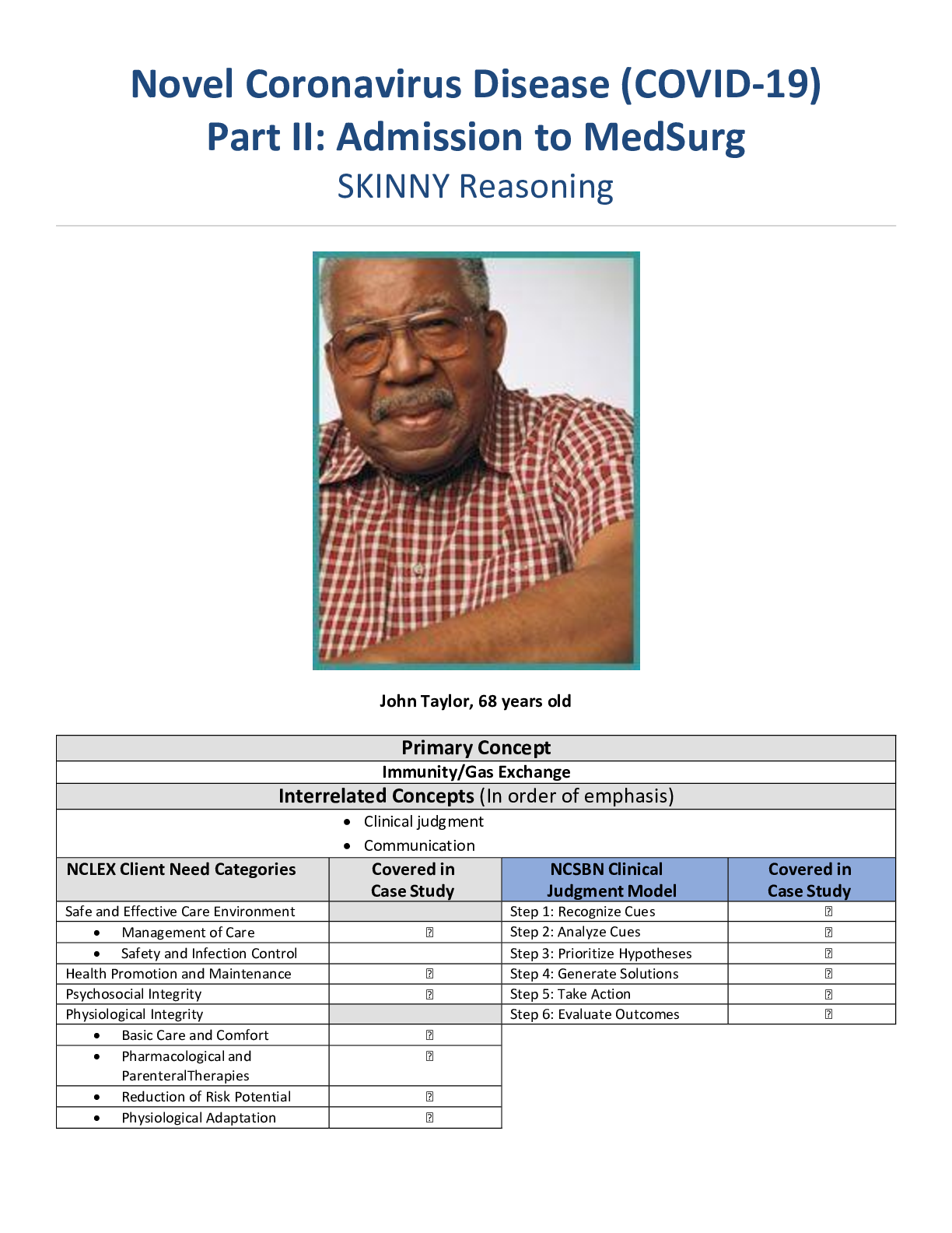 Novel Coronavirus Disease (COVID-19) Part I - III : UNFOLDING Reasoning| John Taylor 68 Years Old| NURSING MISC| Comprehensive Guides for Grade A+| Success!