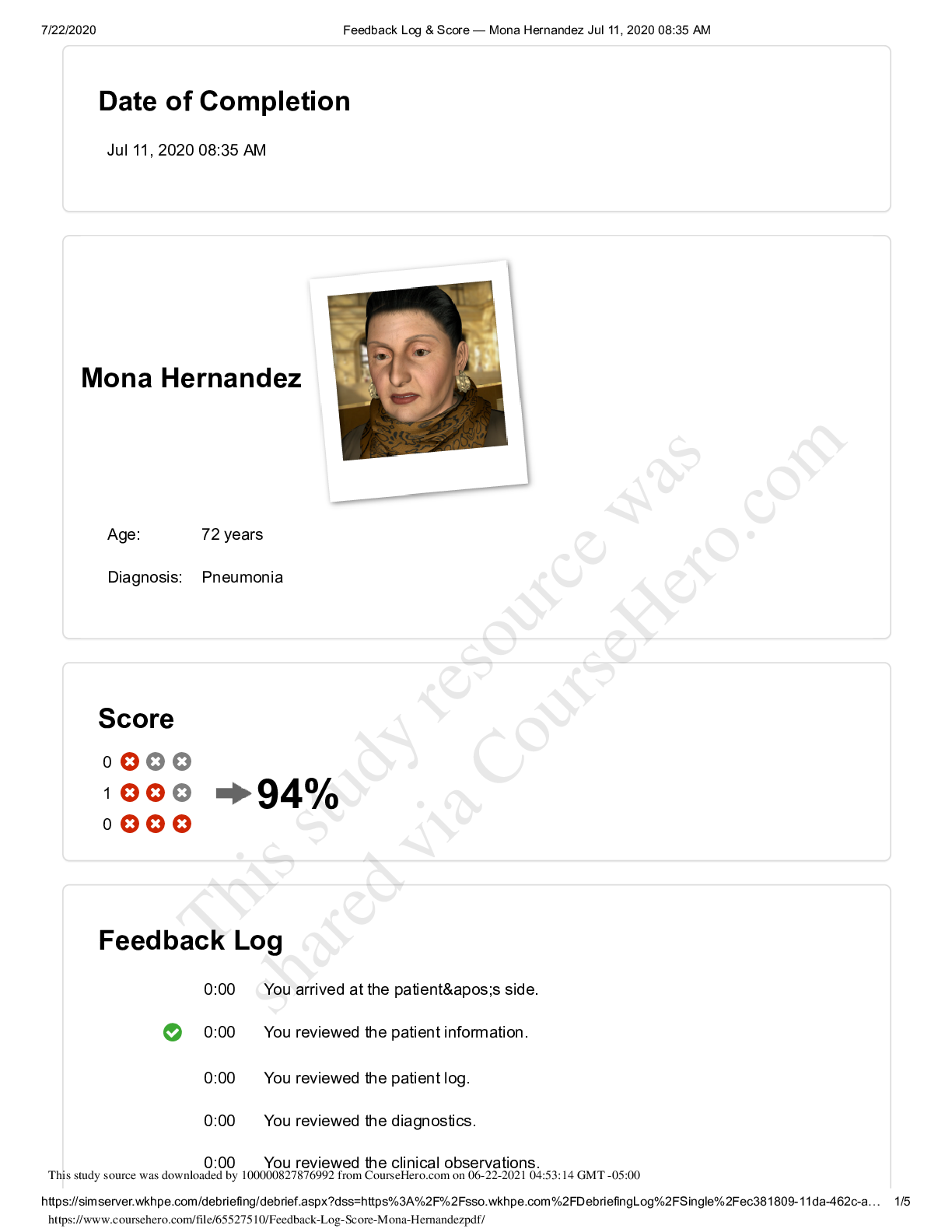 LATEST VSIM FEEDBACK LOG & SCORE BUNDLE, ALL GRADED A