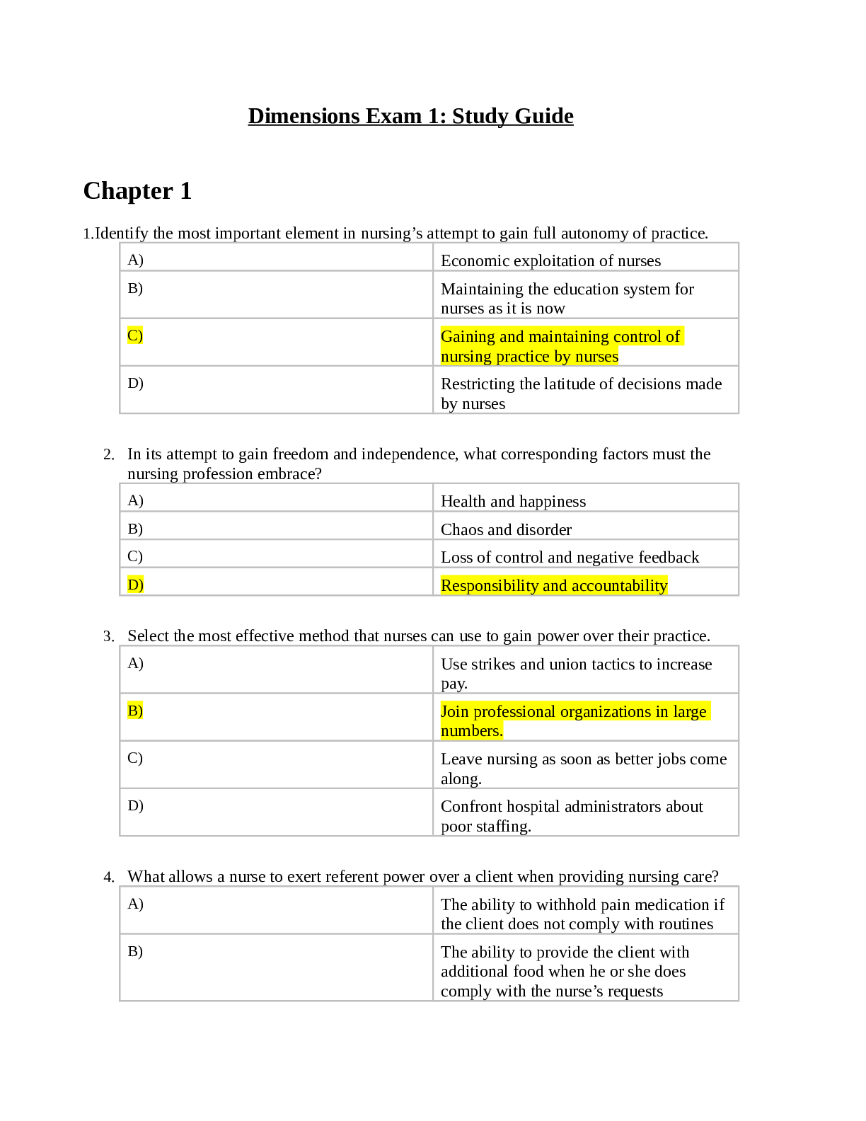 NUR 2058 Dimensions Exam 1 Study Guide|NUR 2058 Dimensions Exam 2 Study Guide|NUR 2058 Dimensions Final Exam Study Guide