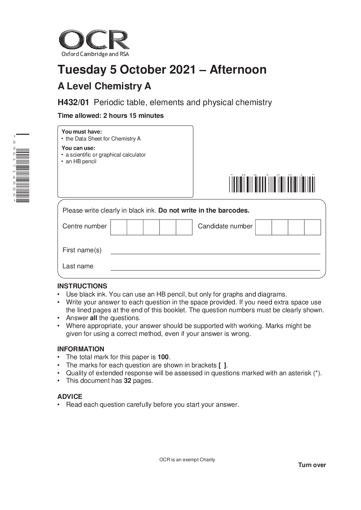 AQA_AS-LEVEL CHEMISTRY. Exampro. MARK SCHEME. Practice Paper 1. Maximum marks: 105. Predicted Papers 2022. AQA_AS-LEVEL CHEMISTRY. Exampro. QUESTION PAPER. Practice Paper 1. Maximum marks: 105. Pre...