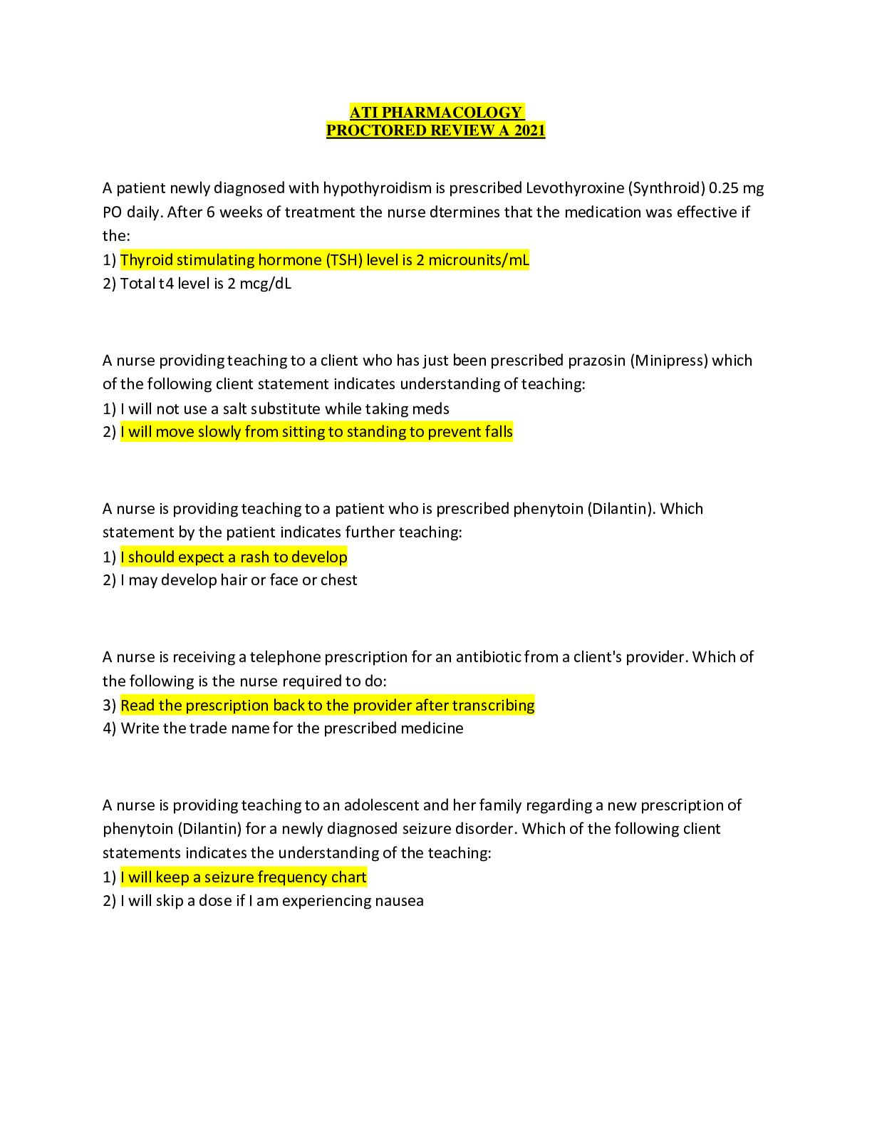 PTCB Practice Exam - Answers - Solutions