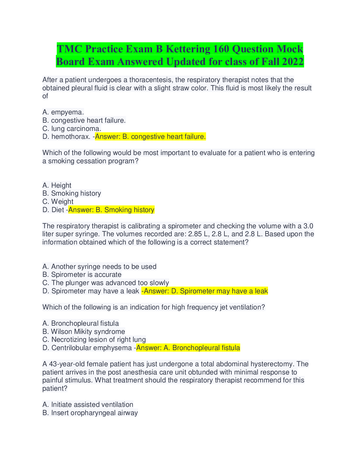 TMC Practice Exam B Kettering 160 Question Mock Board Exam Answered Updated for class of Fall 2022 TMC Practice Exam A Updated 2022 (Graded A+) TMC practice exam Updated 2022 (Graded A+) TMC...