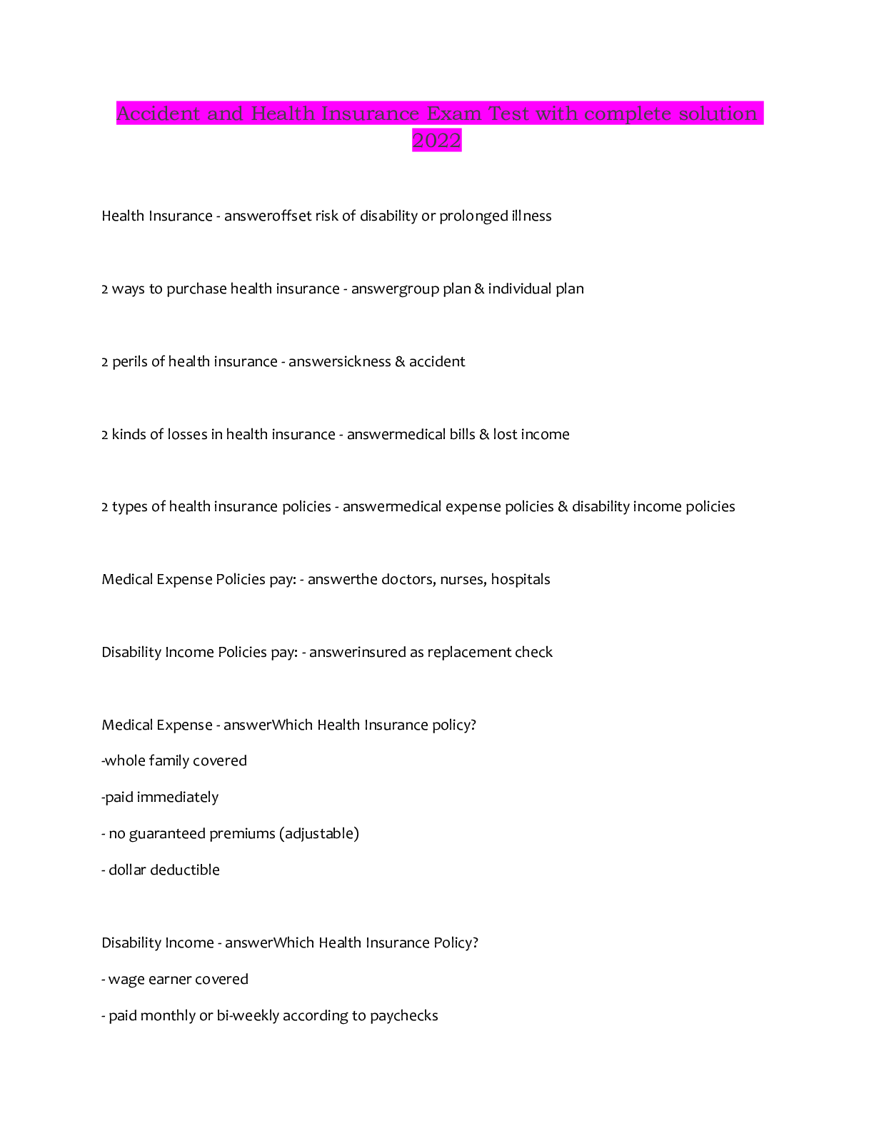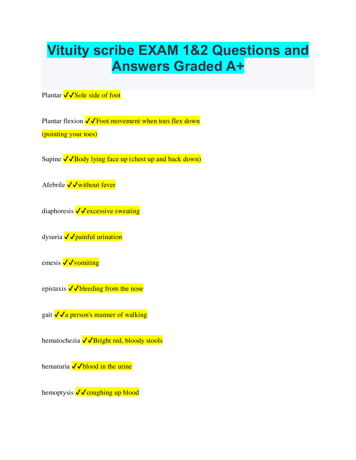 Health Exam Tests with Verified Answers
