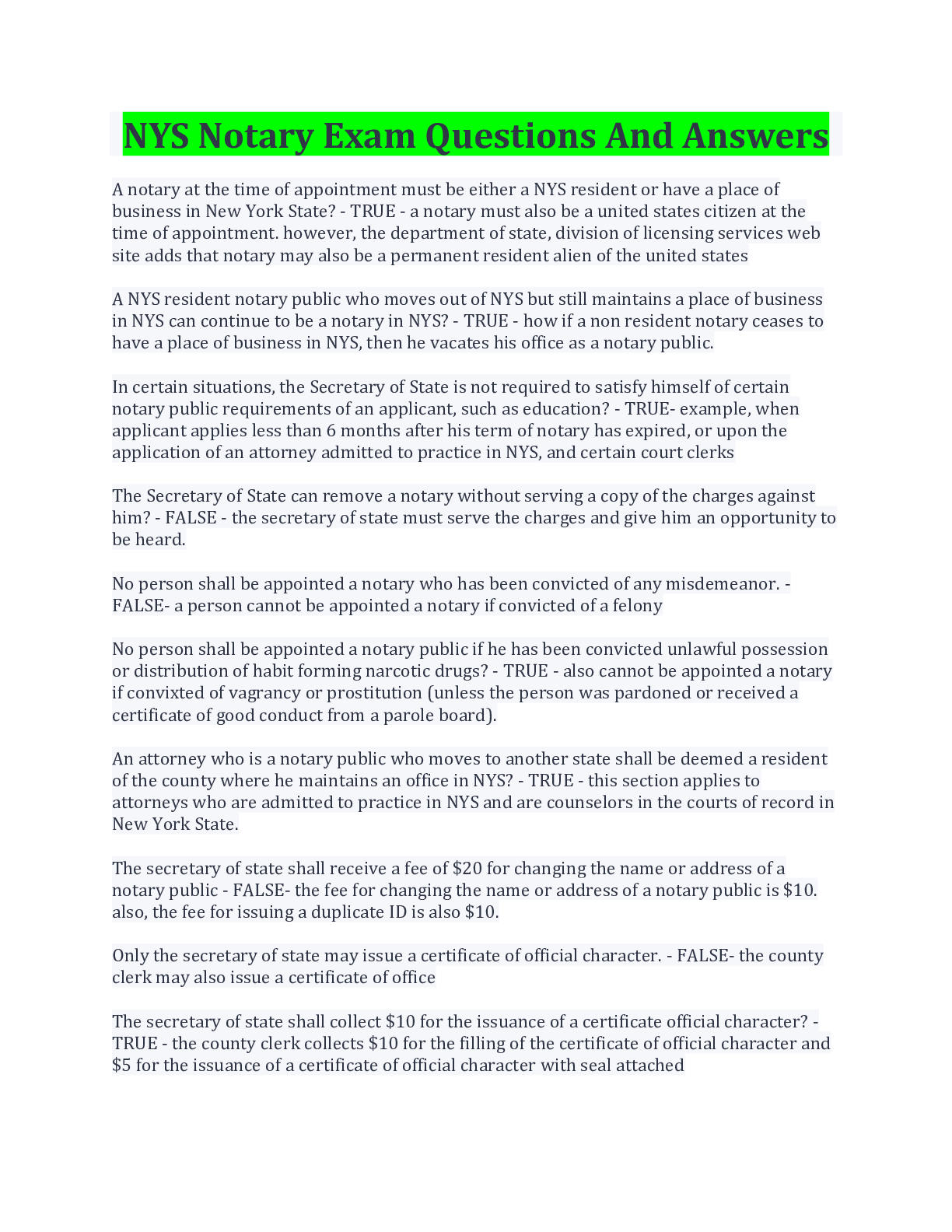 NYS Notary Exams Bundle With Complete Solution Rated A