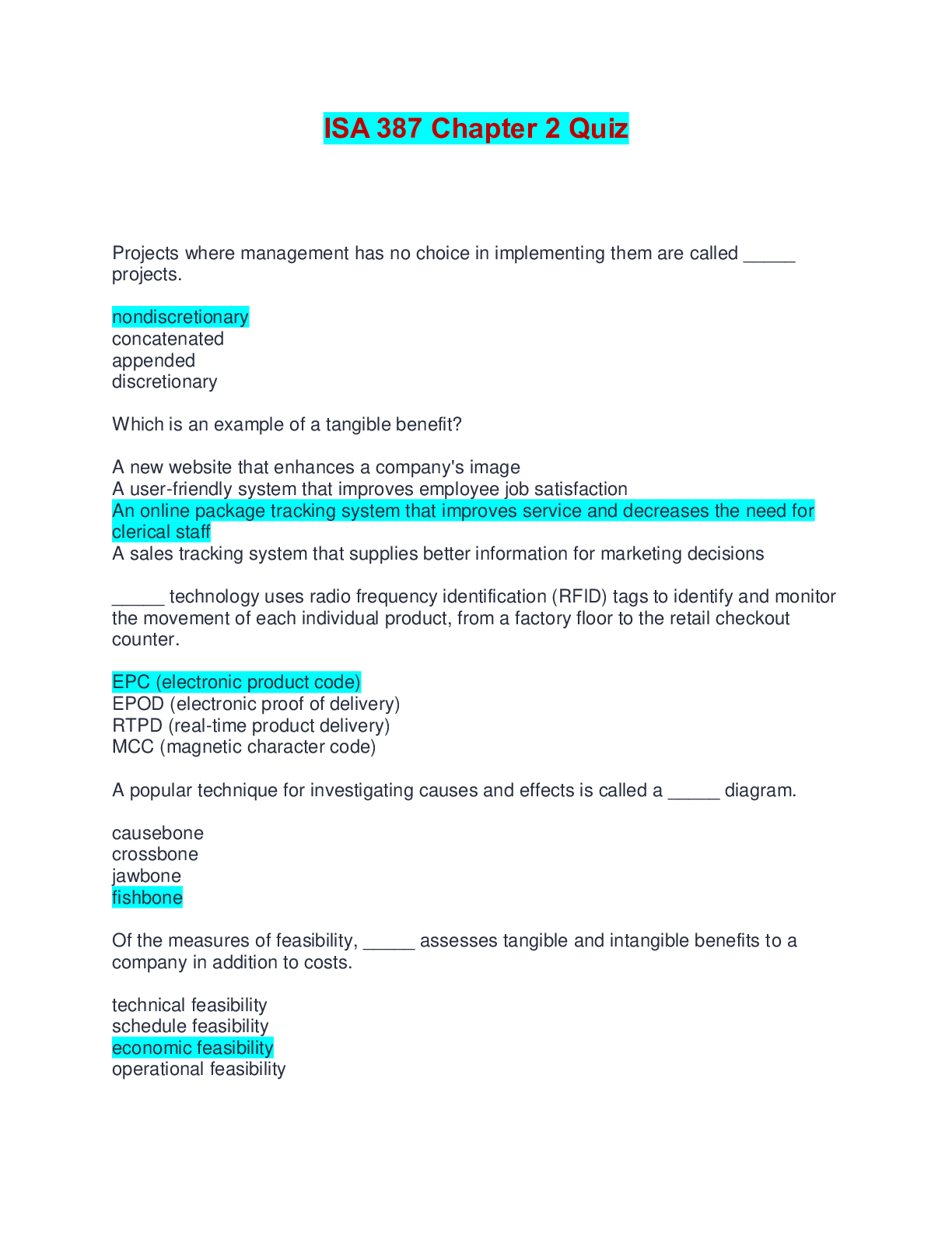 ISA 387 CHAPTER 2, 3, & 5 QUIZ BUNDLE