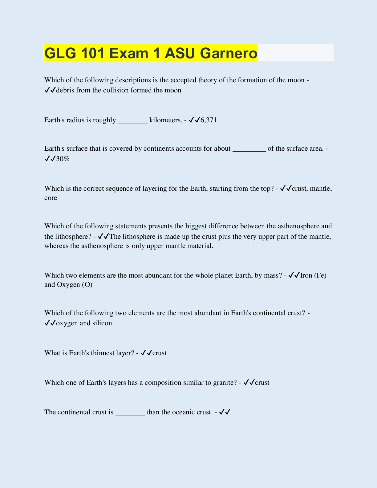 Bundle for GLG 101 Tests | Updated & Verified | with Complete Solution