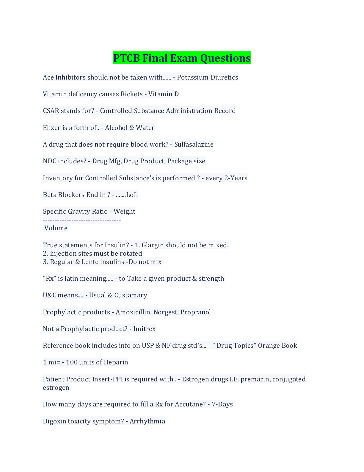 PTCB EXAM QUESTIONS AND ANSWERS LATEST UPDATE SOLUTION PACK