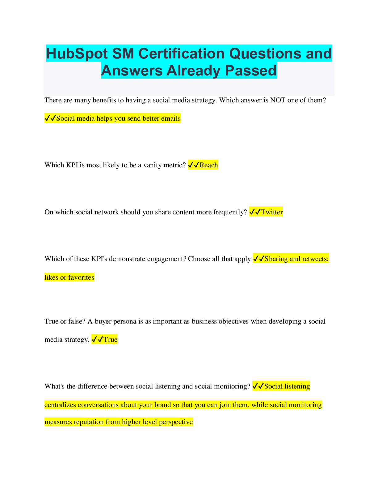 HubSpot Bundled Exams Questions and Answers with Certified Solutions