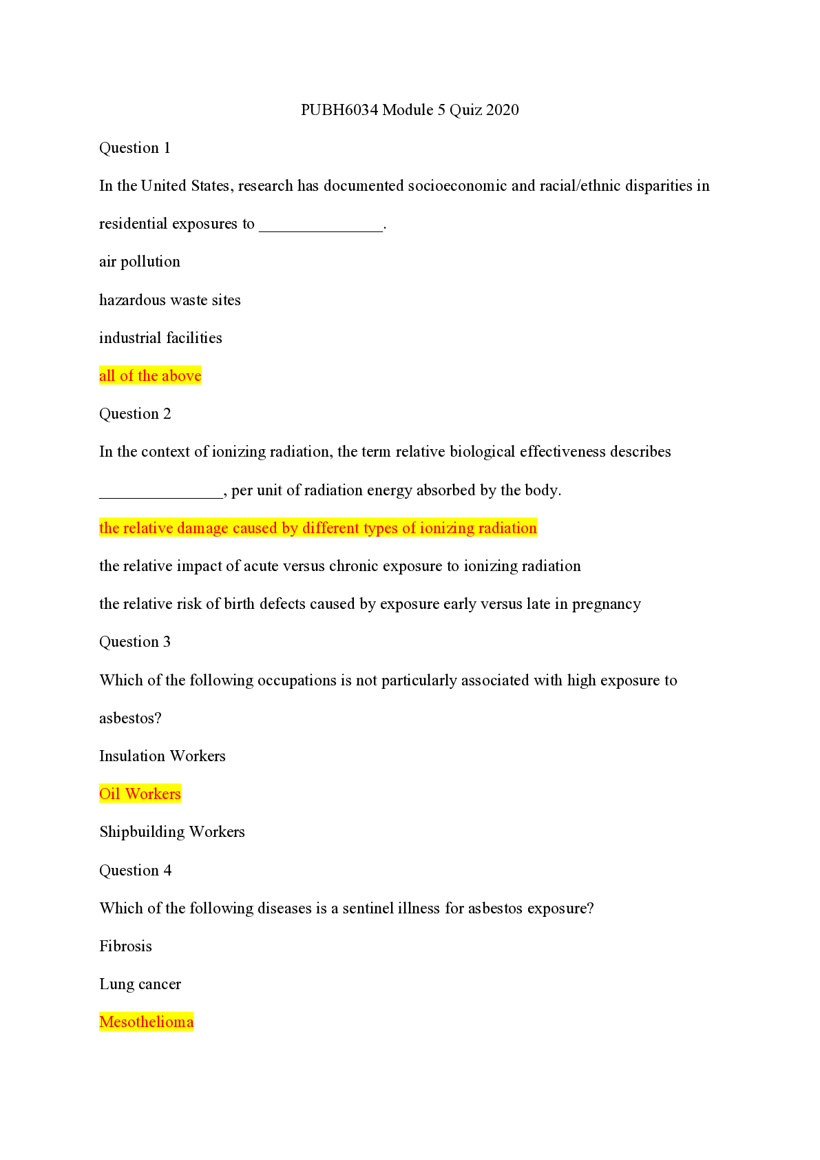 PUBH6034 Module 1/Module 2/Module 3/Module 4/Module 5 Quiz Latest 2020