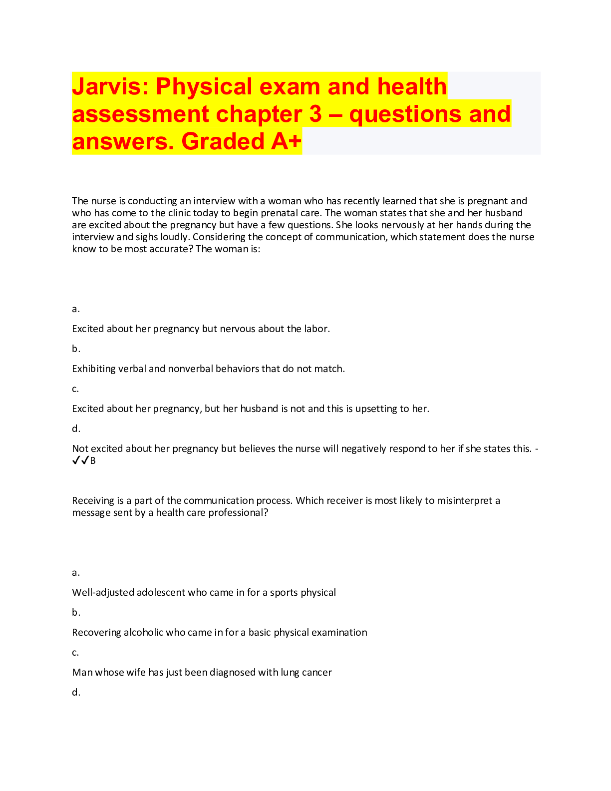 This bindle comprises of all the Jarvis exam questions and answers documents, Graded A+.