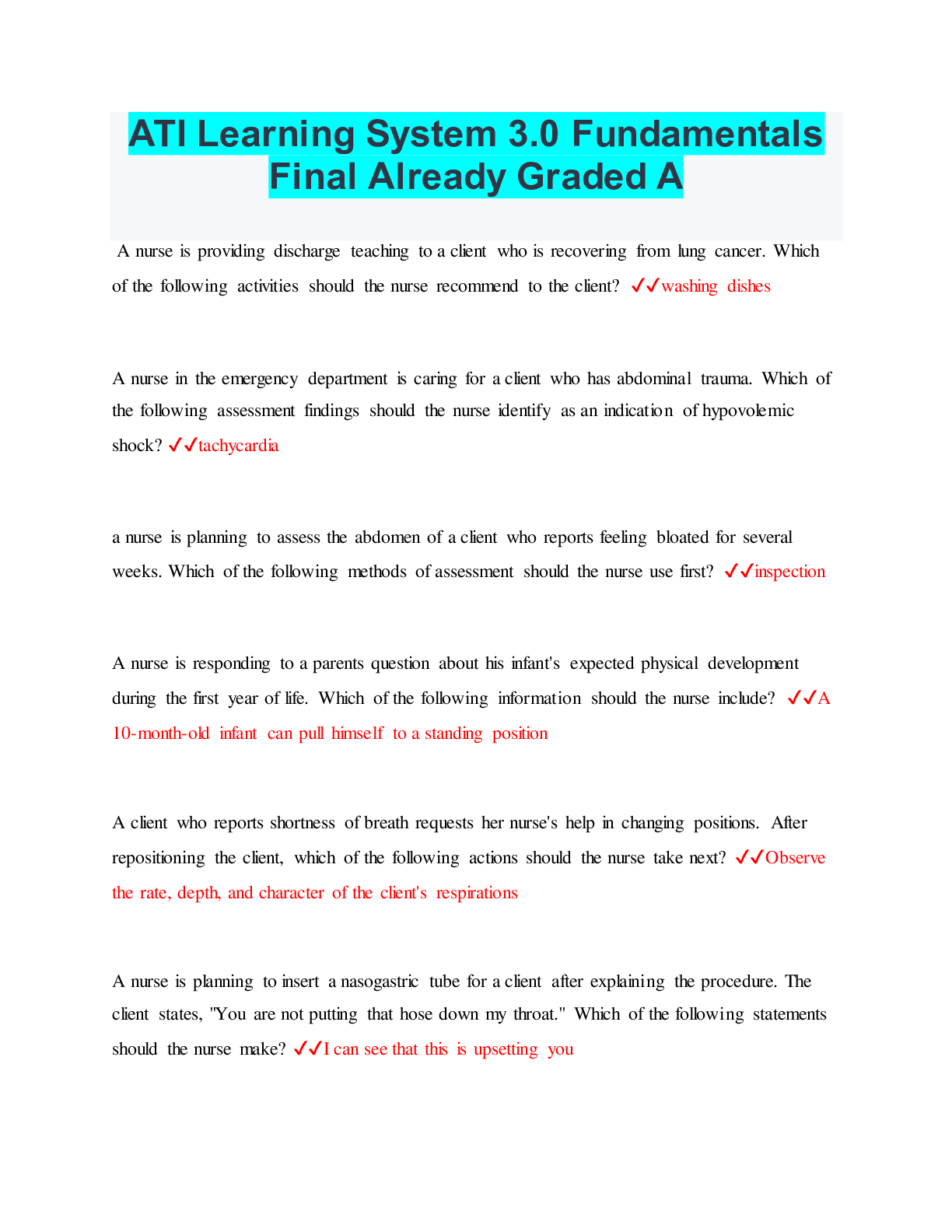 ATI LEARNING SYSTEM BUNDLED EXAMS QUESTIONS AND ANSWERS WITH VERIFIED SOLUTIONS