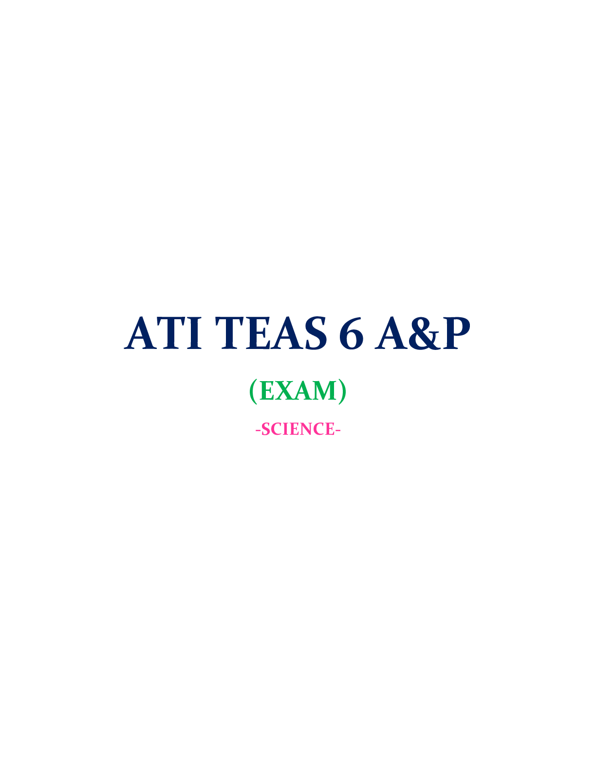 ATI TEAS 6 EXAM STUDY GUIDE, TEST STUDY GUIDE SCIENCE, A&P SCIENCE EXAM, FULL TEST, ATI PRACTICE QUESTIONS SCIENCE: LATEST-2021, COMPLETE GUIDE... [Show More]