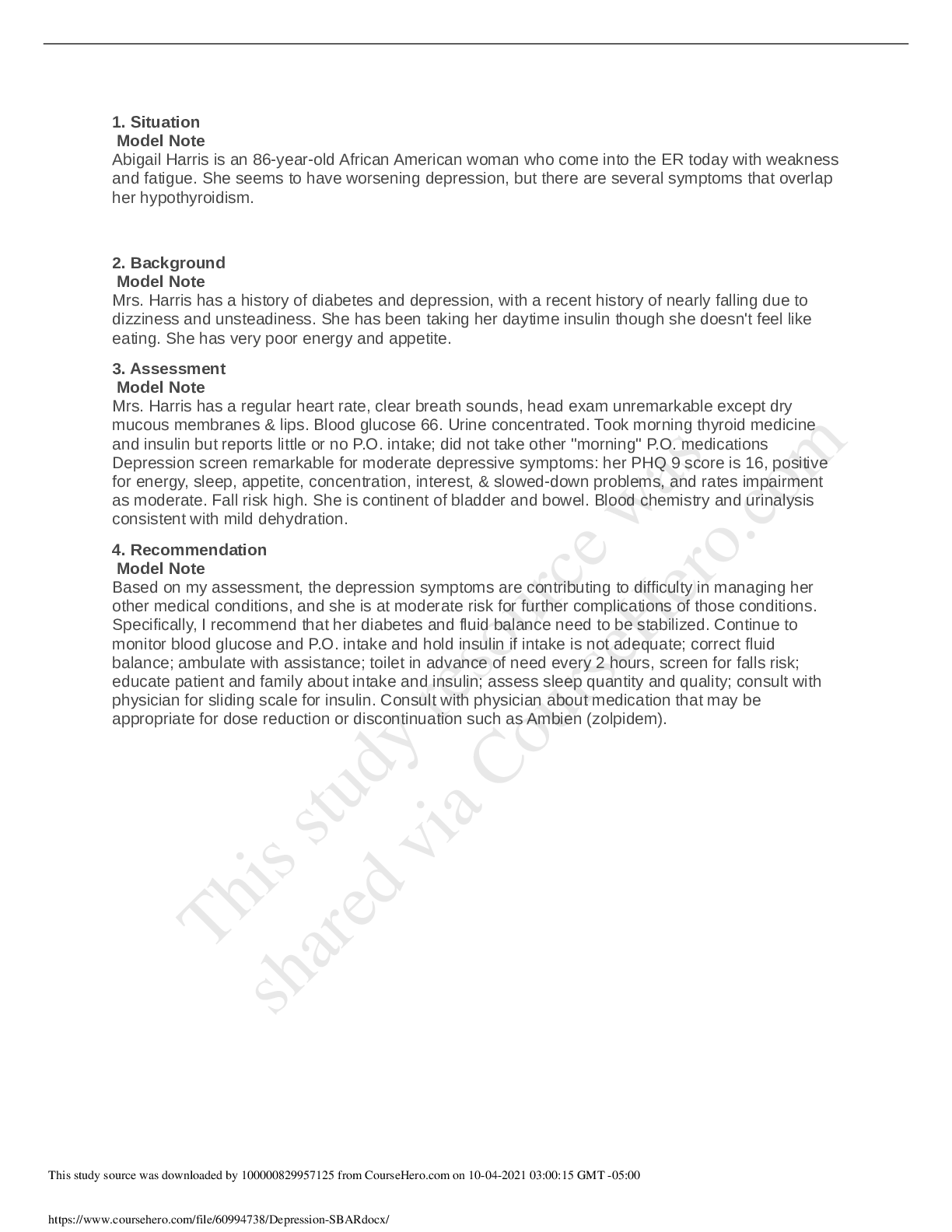Focused Exam Depression:Documentation Review(SBAR).Focused Exam Depression:Documentation Review(SBAR).Focused Exam Depression:Documentation Review(SBAR).Focused Exam Depression:Documentation Review(SB...