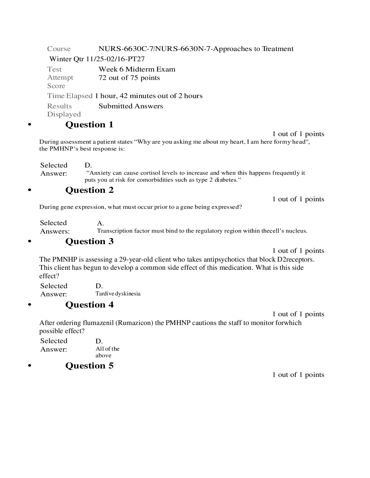 *NURSING> EXAM > Walden University Nurs 6630 Midterm Exam| 72 out of 75 Score (All)