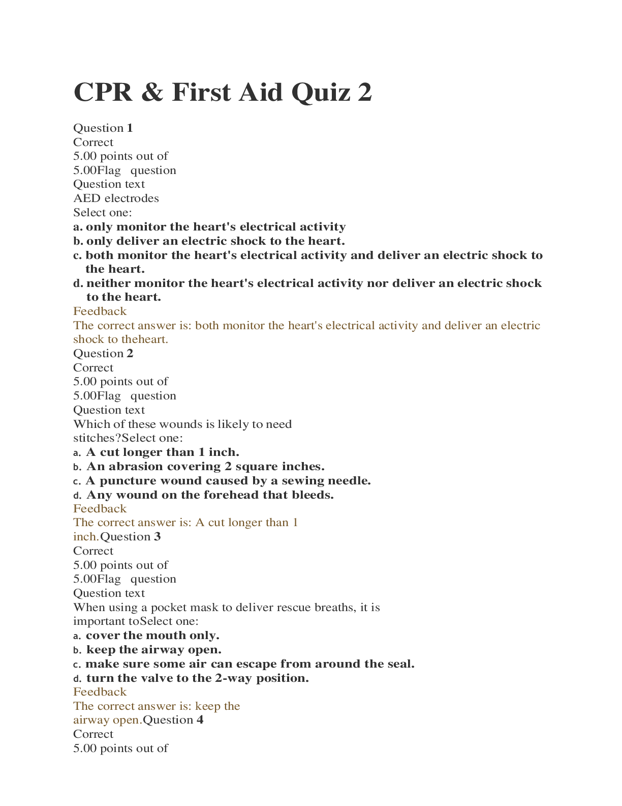 CPR & First Aid Quiz 1 Latest SolutionsCPR & First Aid Quiz 1 Latest SolutionsCPR & First Aid Quiz 1 Latest SolutionsCPR & First Aid Quiz 1 Latest SolutionsCPR & First Aid Quiz 1 Latest SolutionsCPR &...