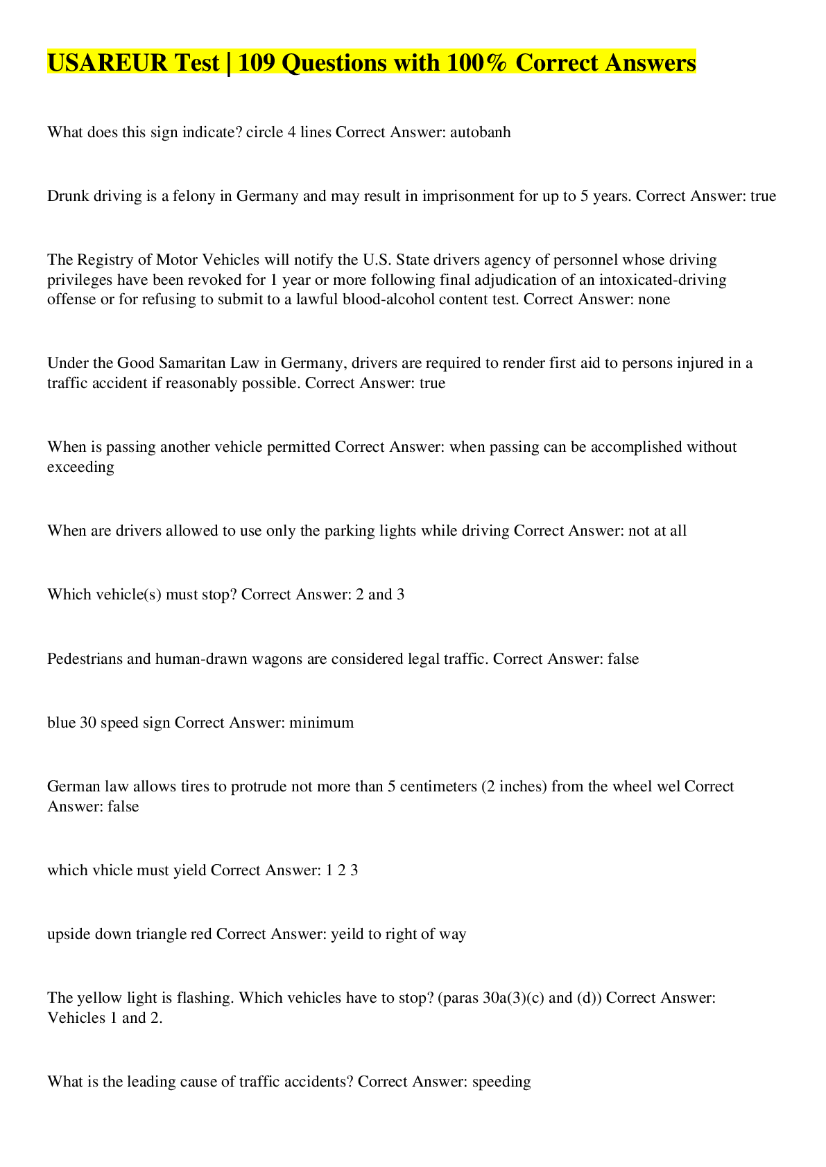 Law> EXAM > USAREUR Test | 109 Questions with 100% Correct Answers (All)