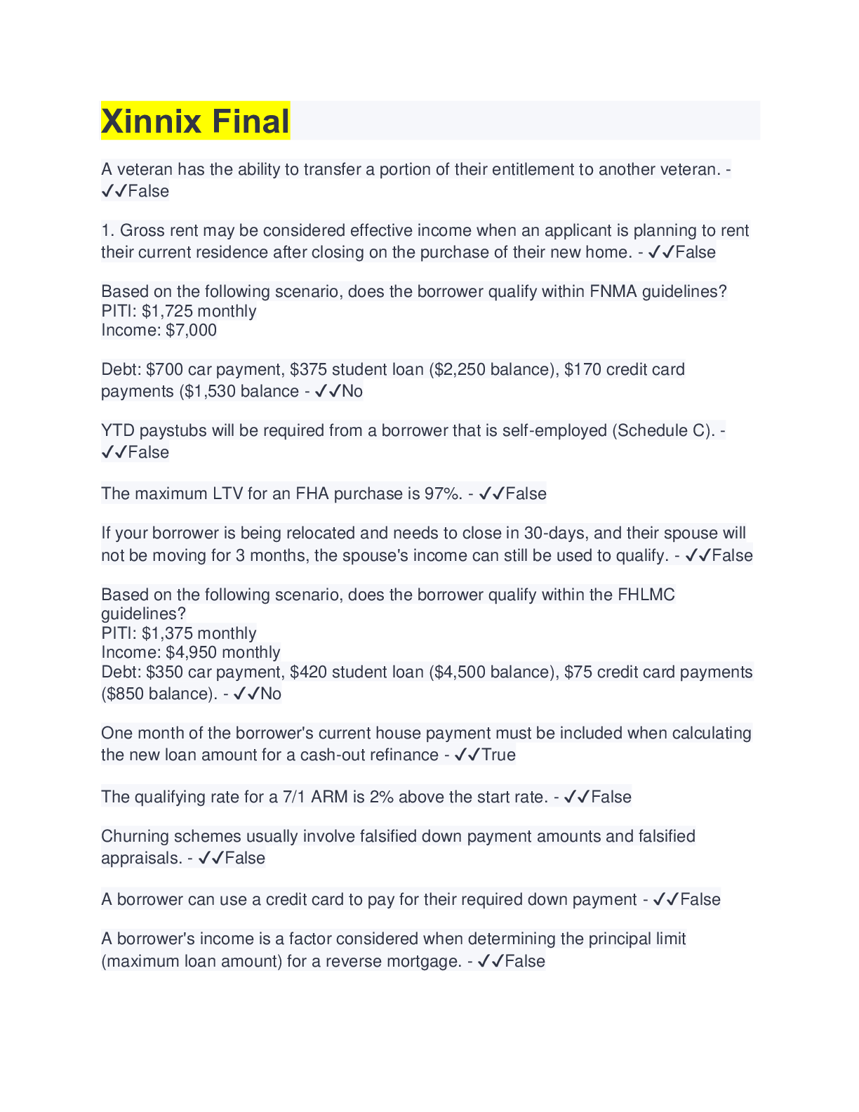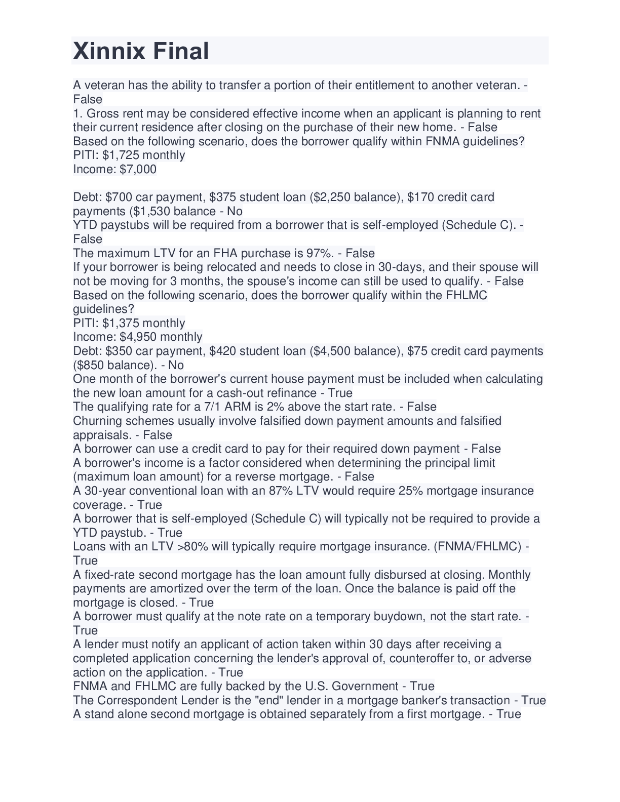 Business> EXAM > Xinnix Ground School Mortgage Final Exam | 55 Questions with 100% Correct Answers (All)