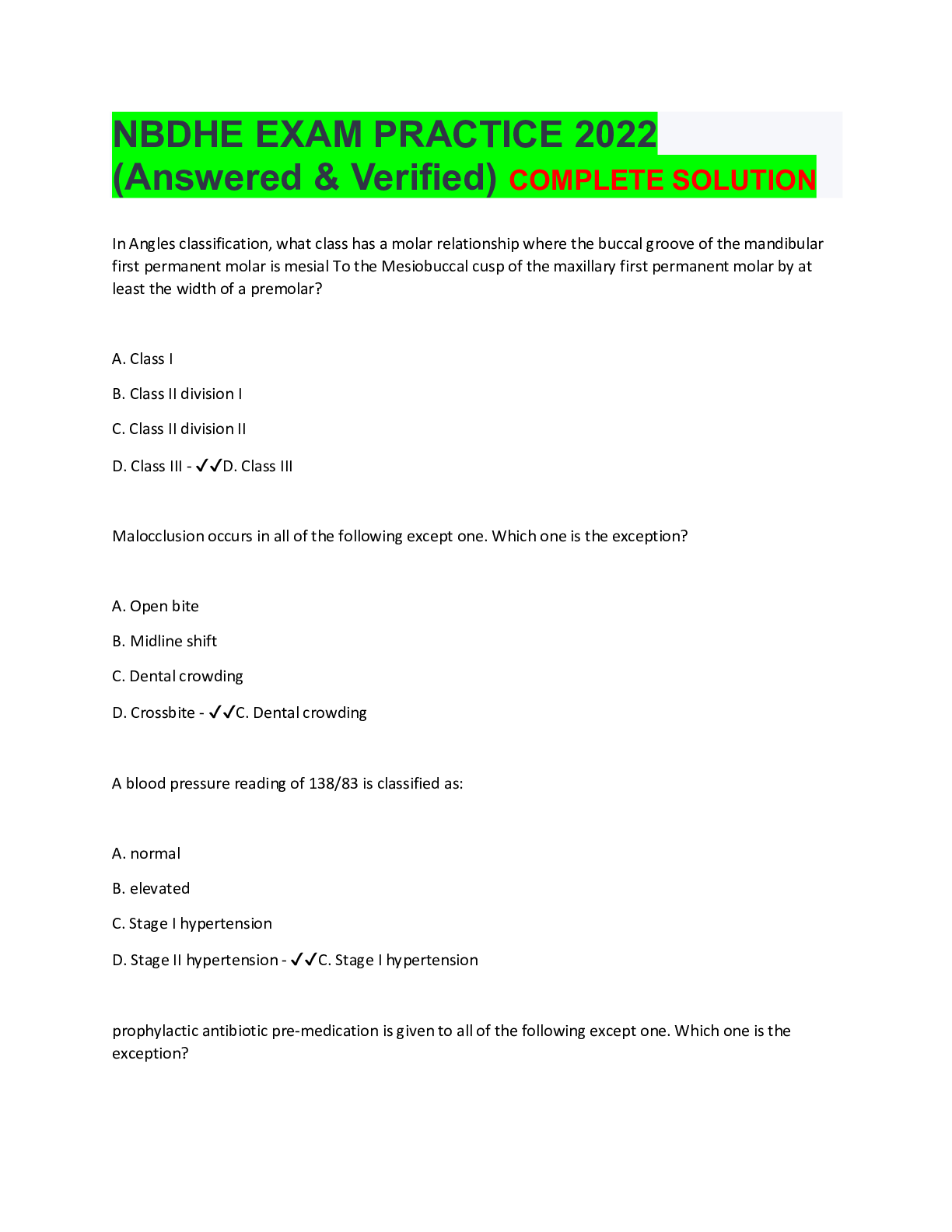 Health Care> EXAM > NBDHE EXAM PRACTICE 2022 (Answered & Verified) COMPLETE SOLUTION (All)