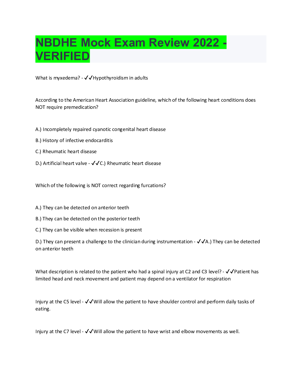 Health Care> EXAM REVIEW > NBDHE Mock Exam Review 2022 - VERIFIED (All)