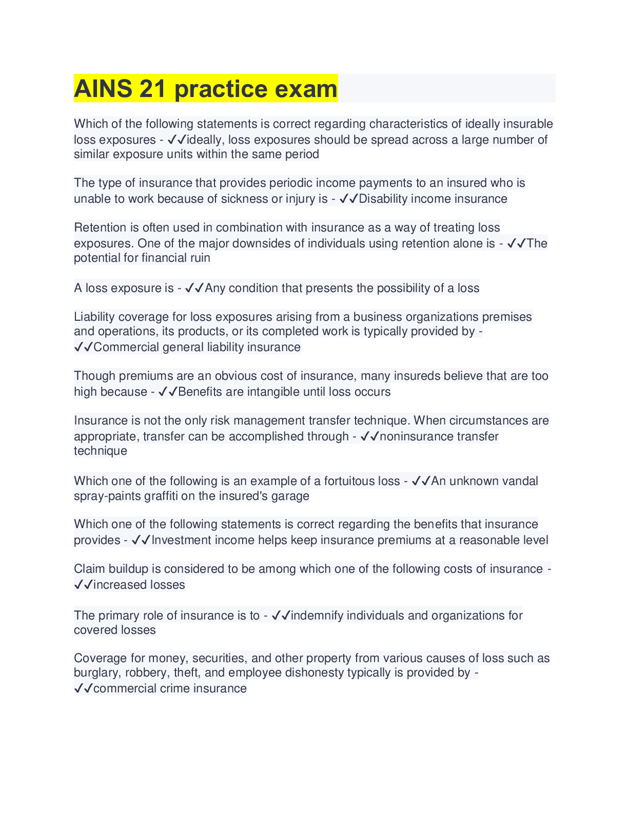Business> STUDY GUIDE > AINS 21 Final Exam Study Guide | with Complete Solution (All)