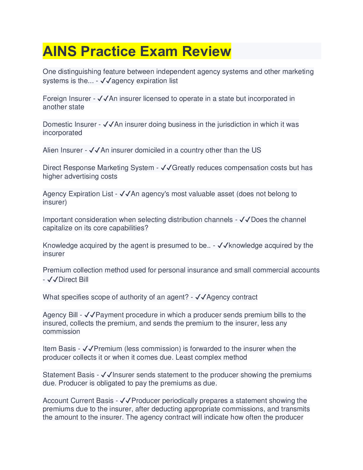 Business> EXAM > AINS Practice Exam Review | with Complete Solution (All)