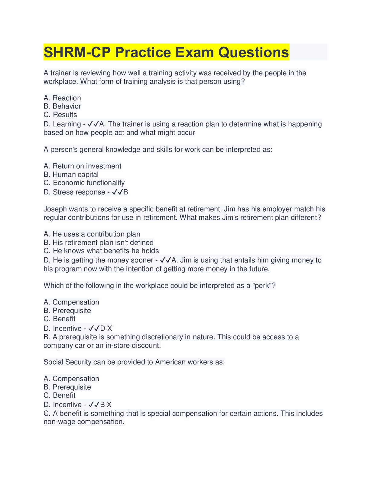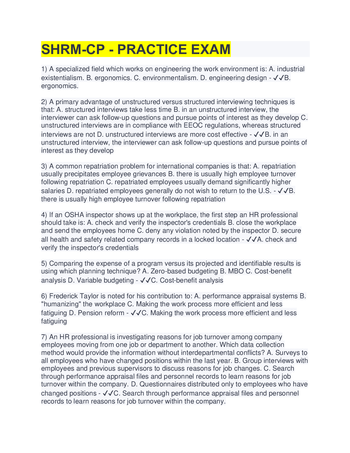 Human Resource Management> EXAM > SHRM-CP Practice Exam Questions (139 Questions with 100% Correct Answers) (All)