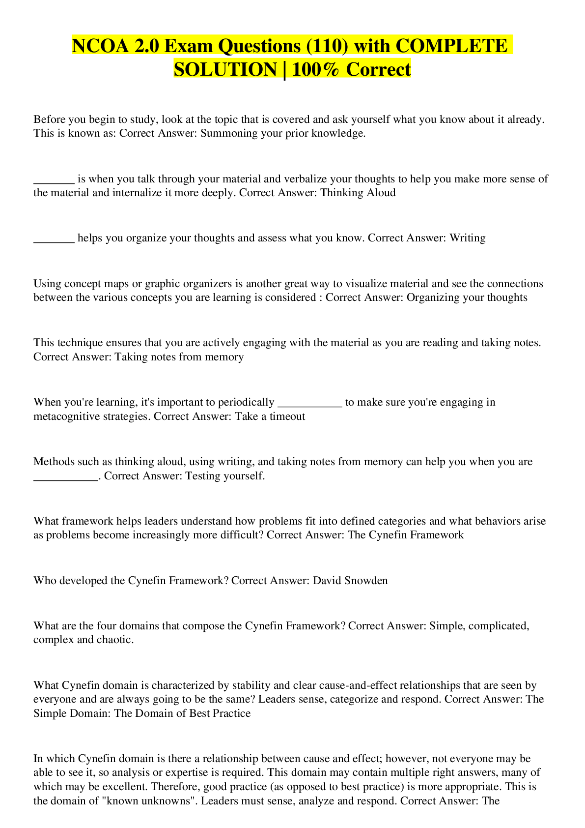 Health Care> EXAM > NCOA DLC 2.0 Problem Solving Final Test 1 with COMPLETE SOLUTION | 103 Questions with 100% Correct Answers (All)