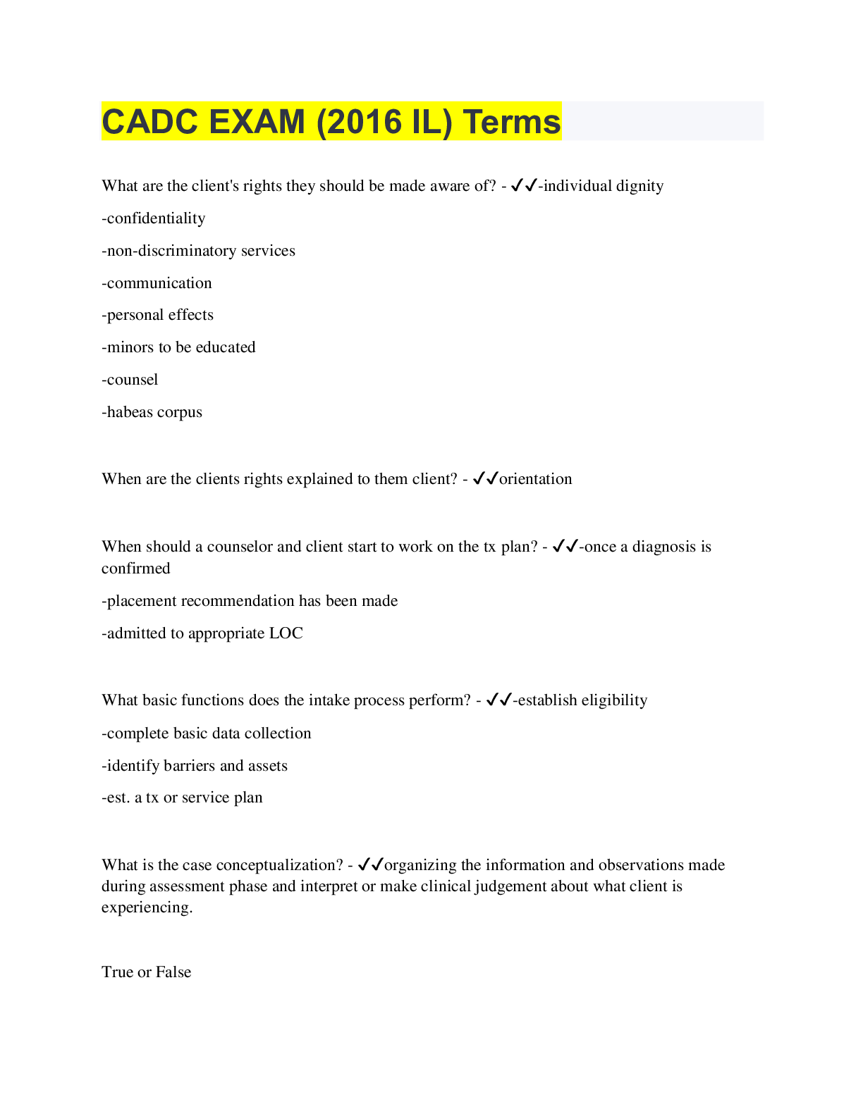 Health Care> EXAM > CADC EXAM (2016 IL) Terms with COMPLETE SOLUTION (All)