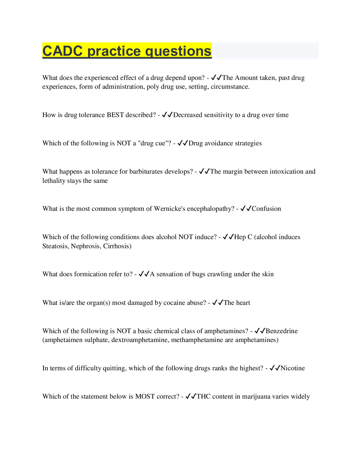 Health Care> EXAM > CADC practice questions (300+ Questions with 100% Correct Answers) (All)