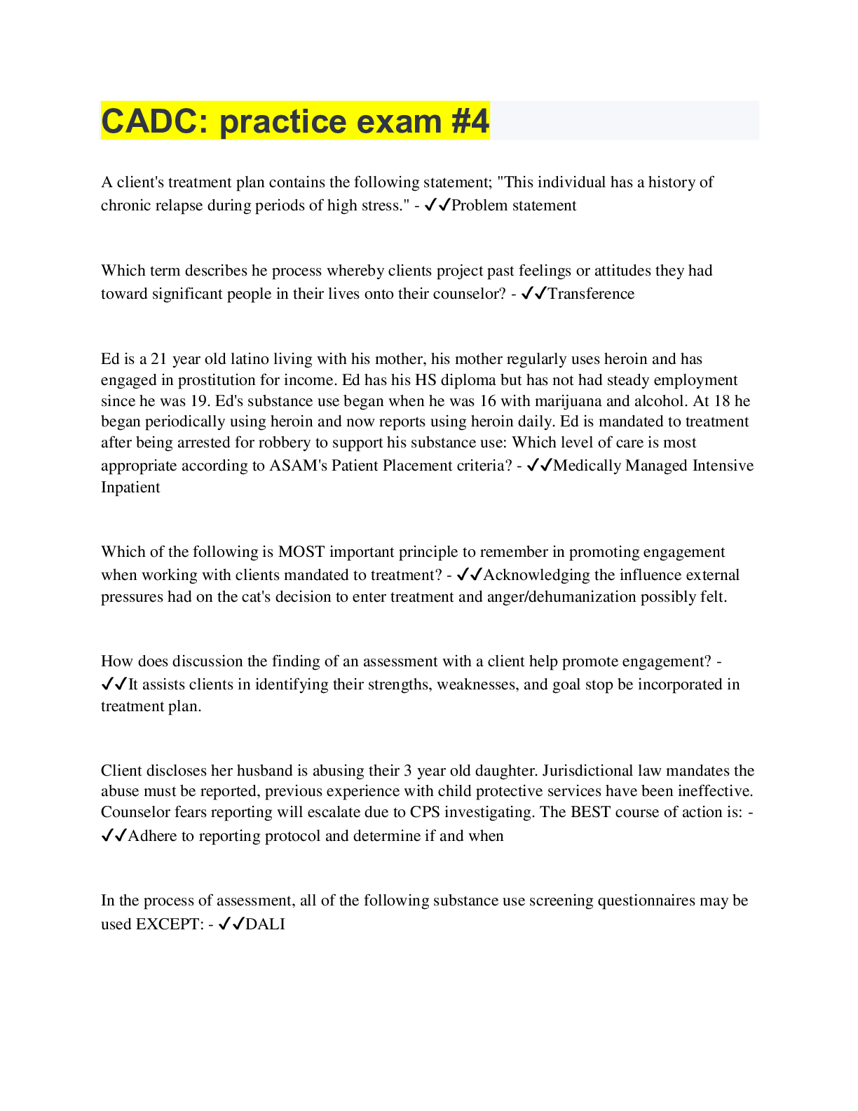 Health Care> EXAM > CADC: practice exam #4 with COMPLETE SOLUTION (All)