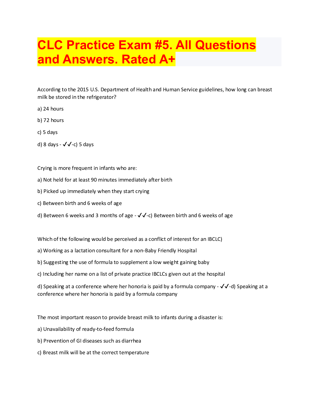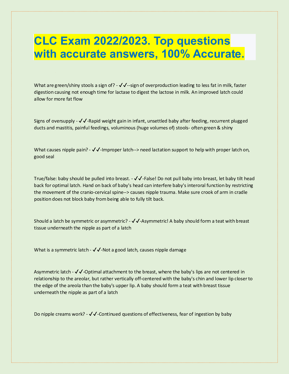 IBCLC Exam Questions and answers. Graded A+. 100% pass rate. 2022