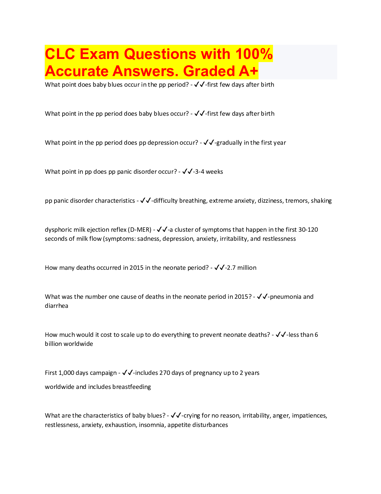 *NURSING> QUESTIONS & ANSWERS > CLC Exam Questions with 100% Accurate Answers. Graded A+ (All)