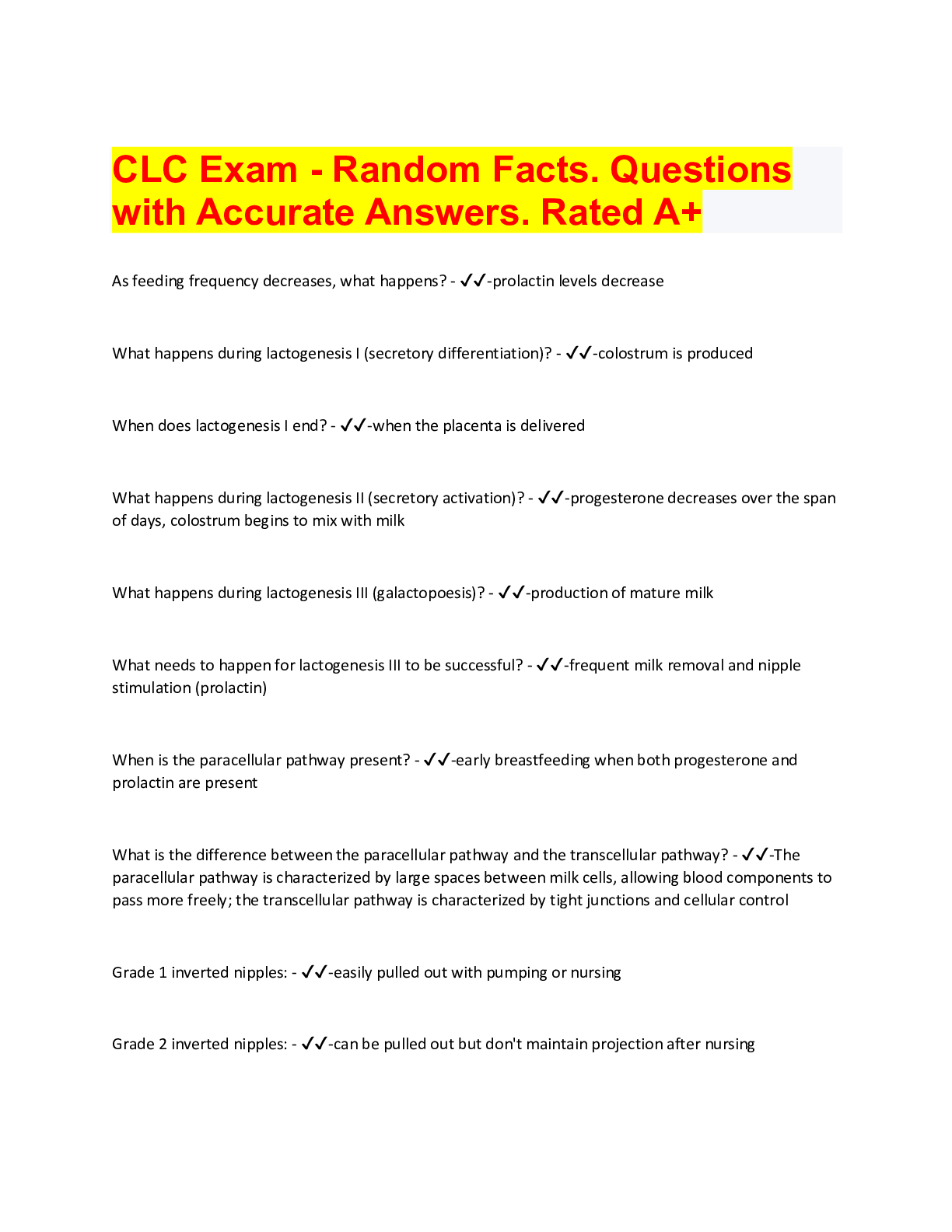 *NURSING> Summary > IBCLC Exam Questions and answers. Graded A+. 100% pass rate. 2022 (All)