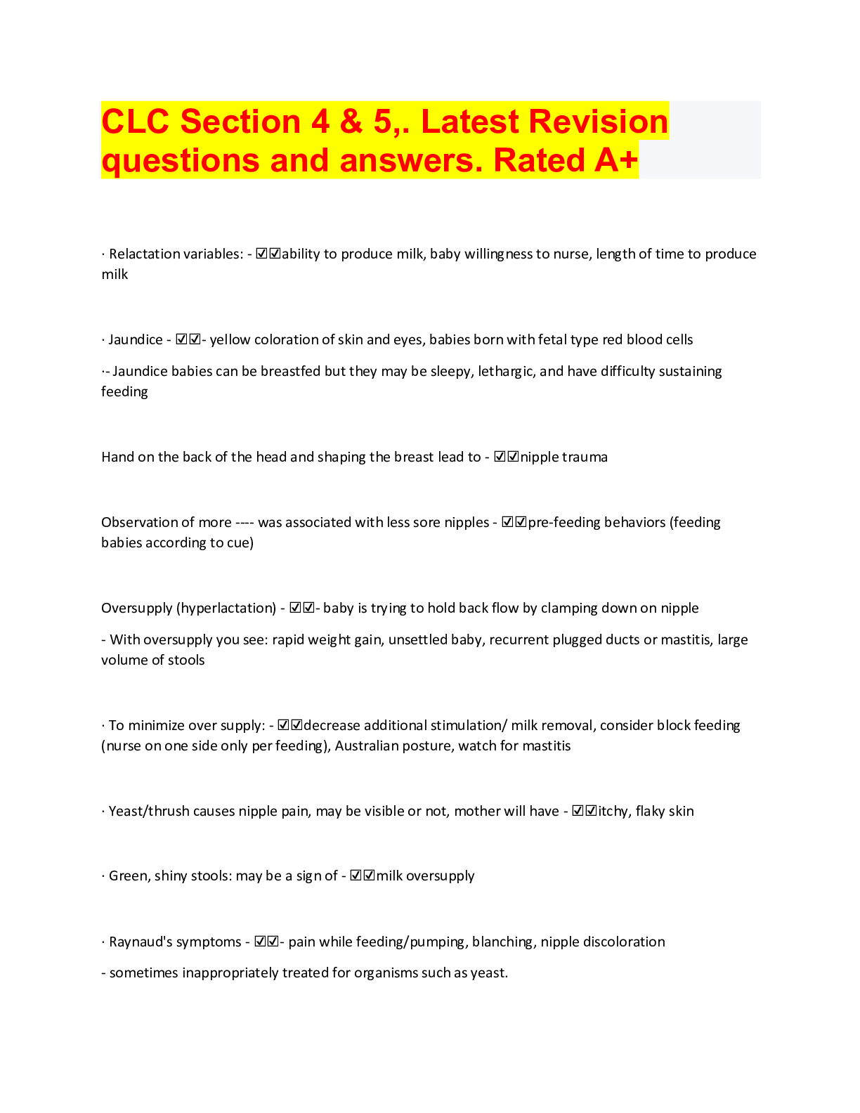 *NURSING> QUESTIONS & ANSWERS > CLC Section 4 & 5,. Latest Revision questions and answers. Rated A+ (All)