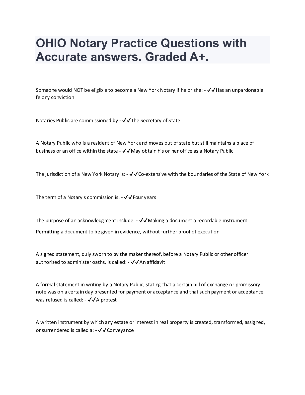 Answered Notary Exam Questions. 100% Accurate. Graded A+. Ohio State University